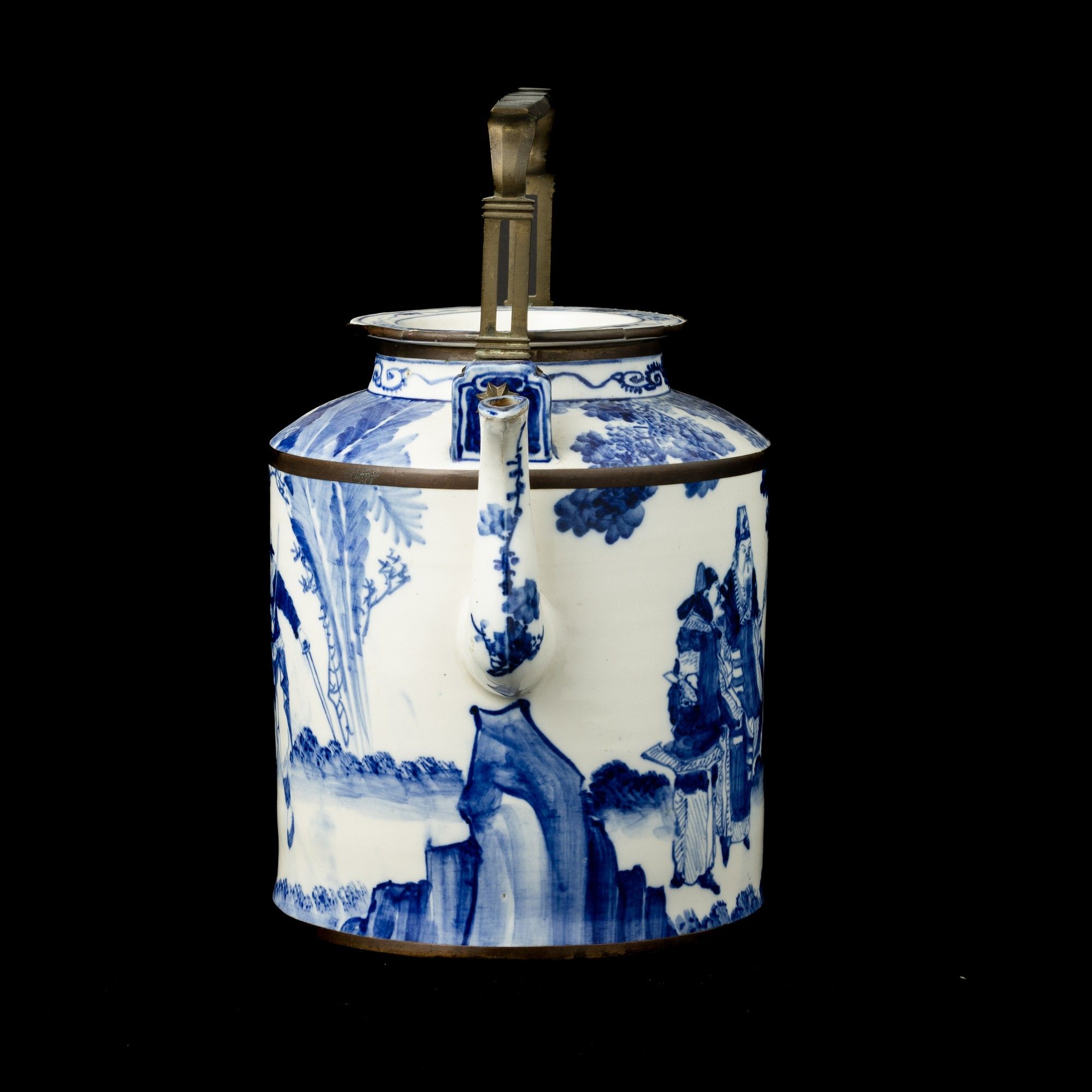 Grande teiera in porcellana bianca e blu con guerrieri, Cina, Dinastia Qing, epoca [..]