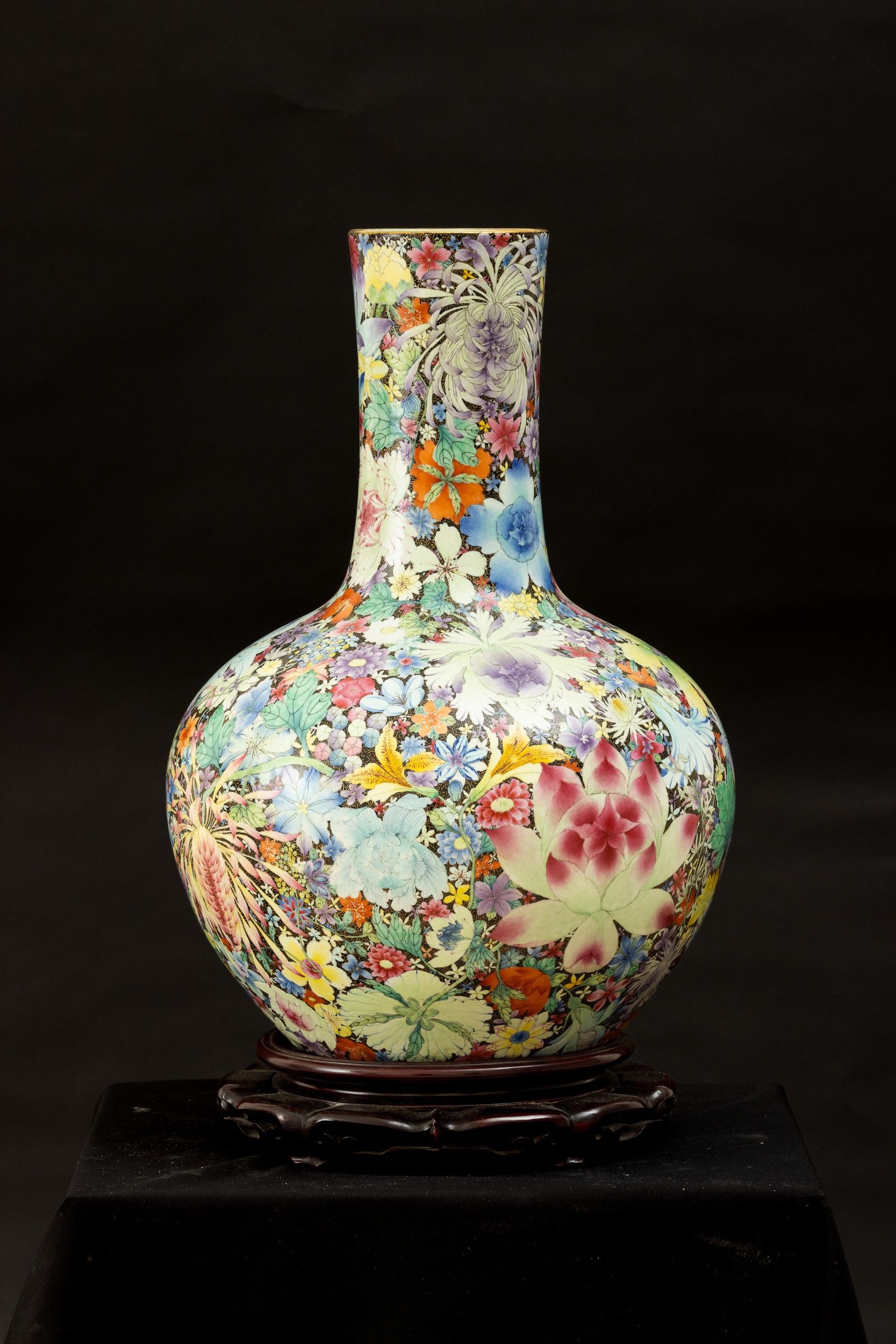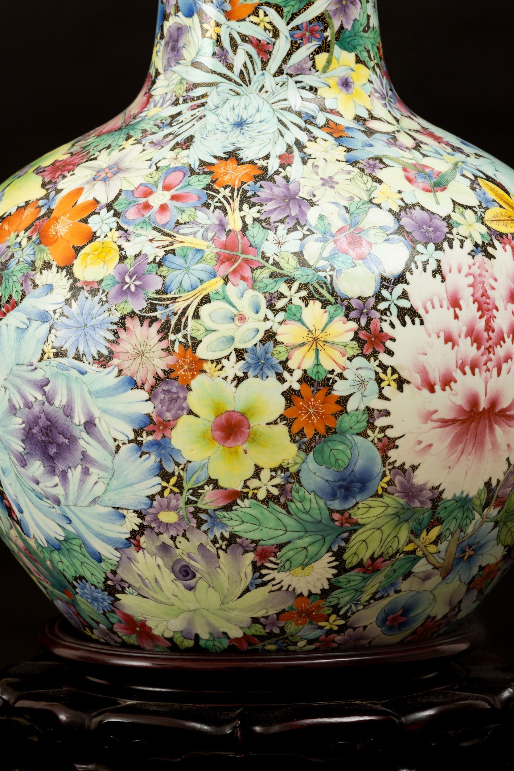 Grande vaso Tianqiuping Famiglia Nera in porcellana con decoro millefleures, Cina, [..]