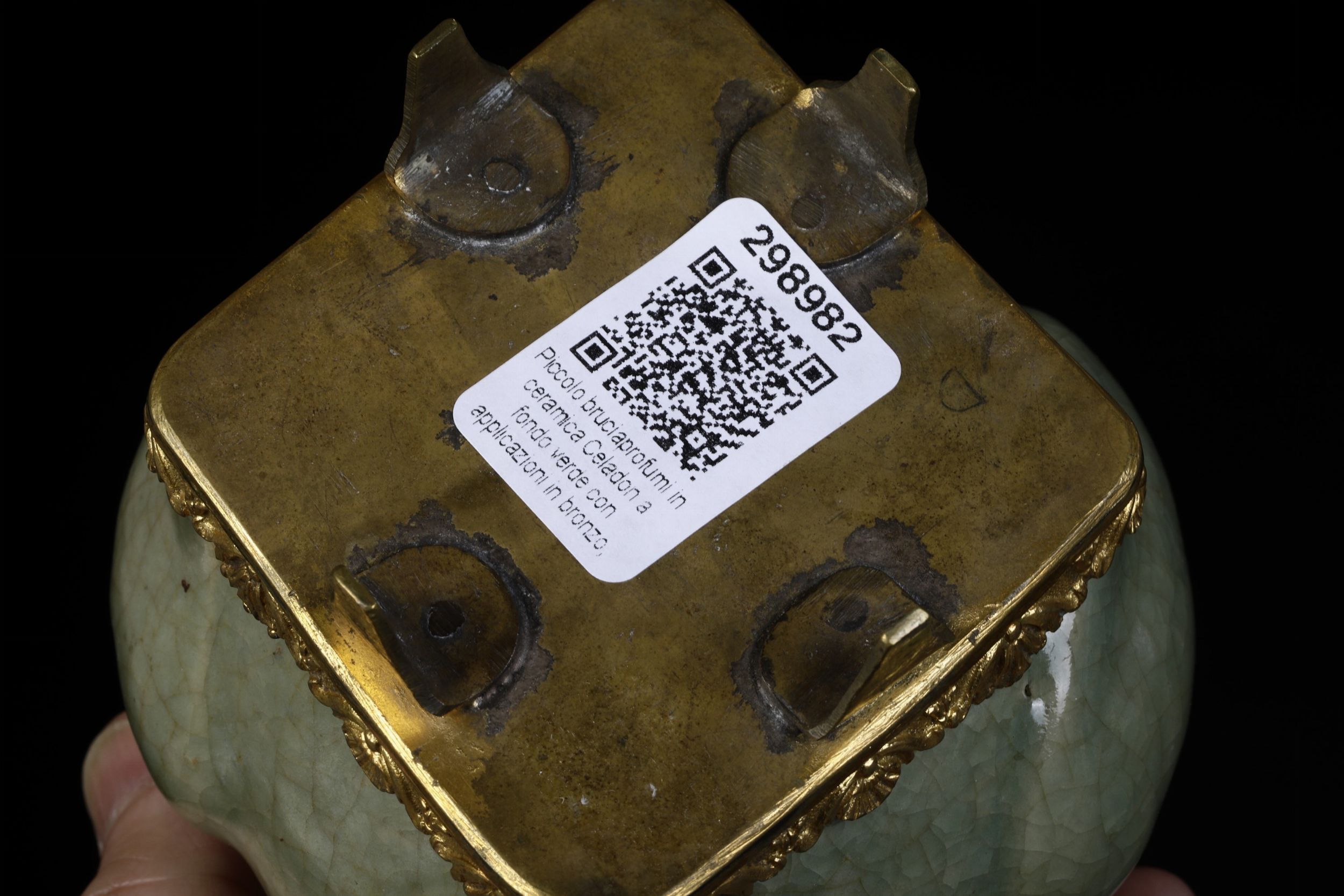 Incensiere in porcellana Celadon Longquan con pressa del coperchio a foggia di cane [..]