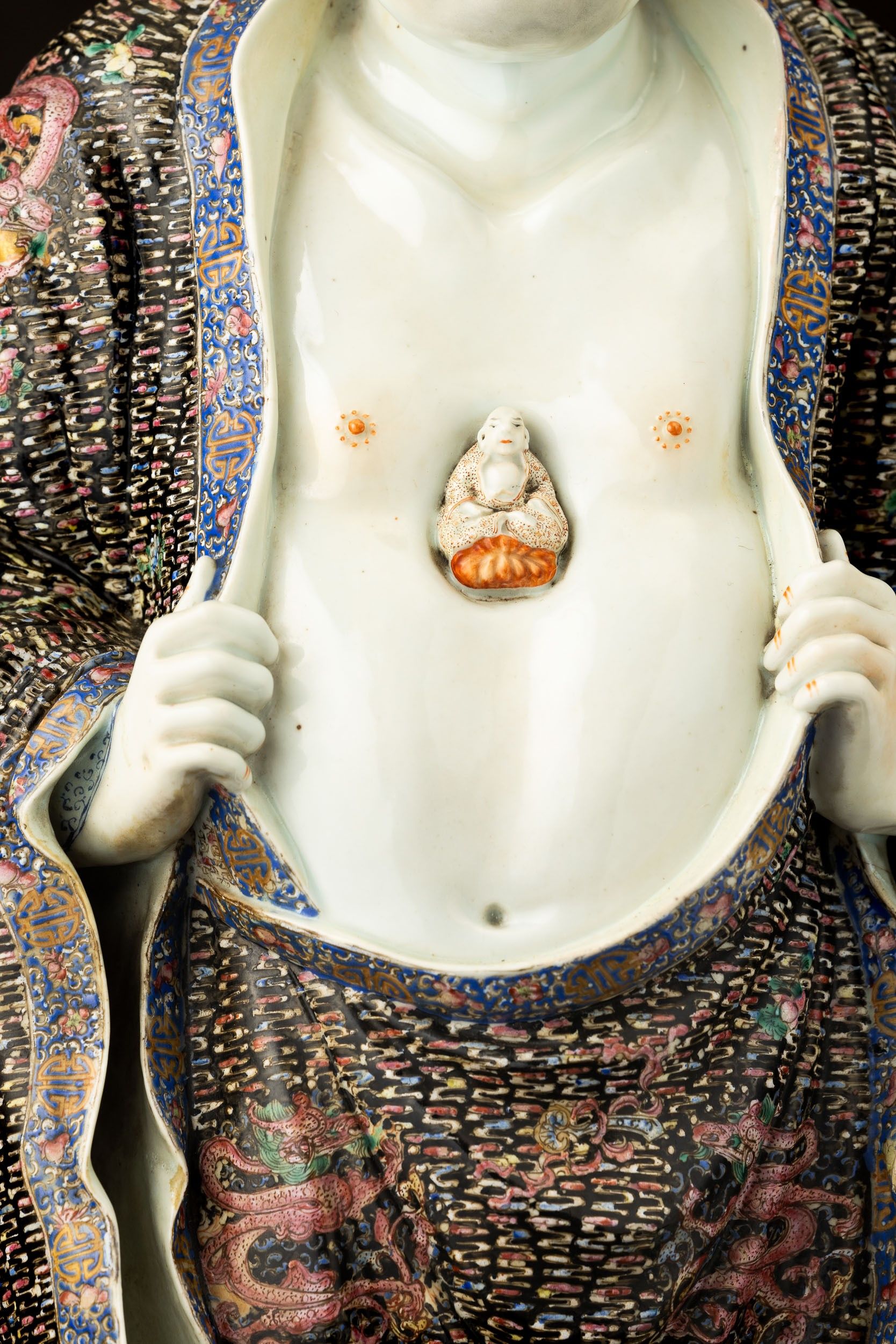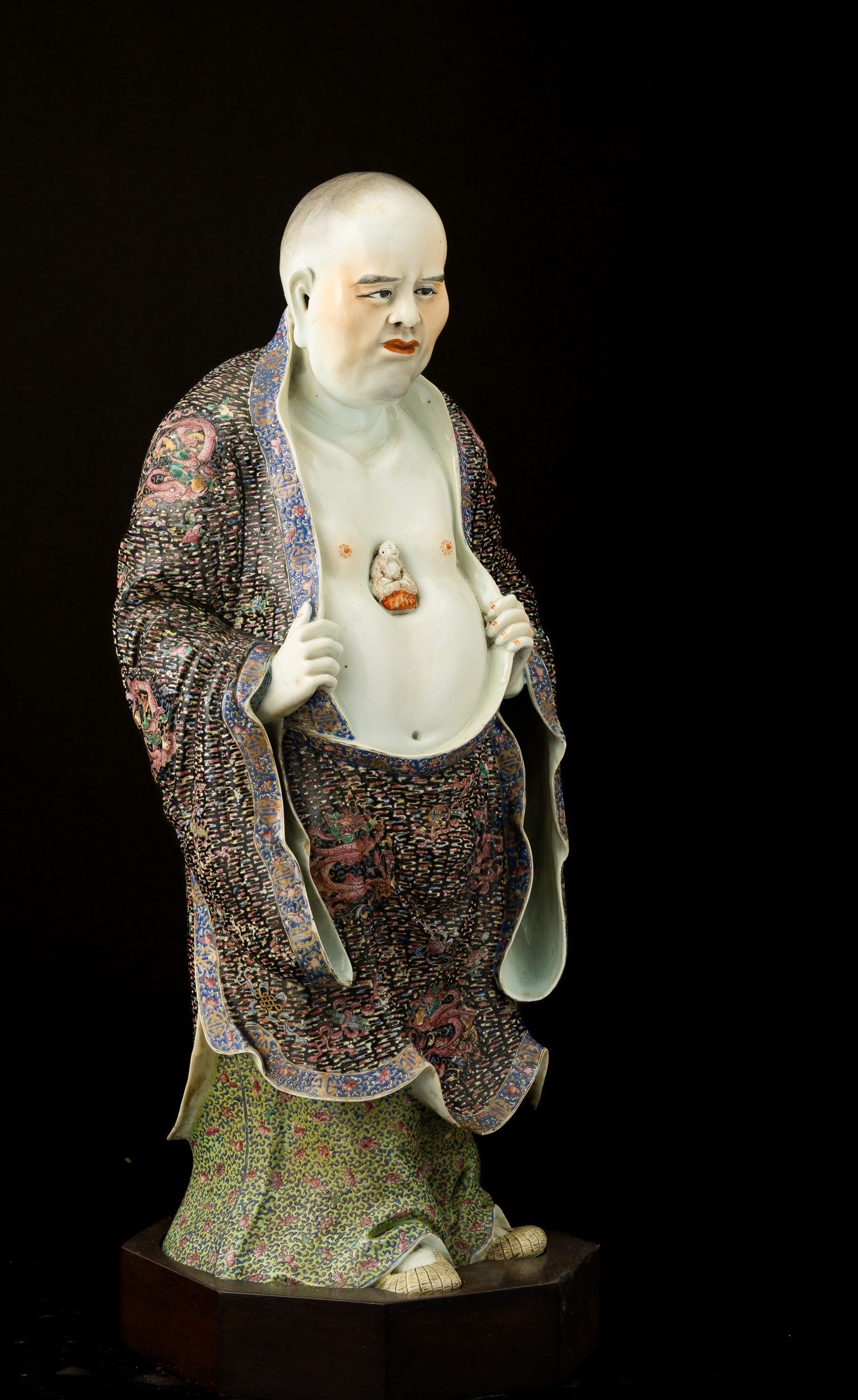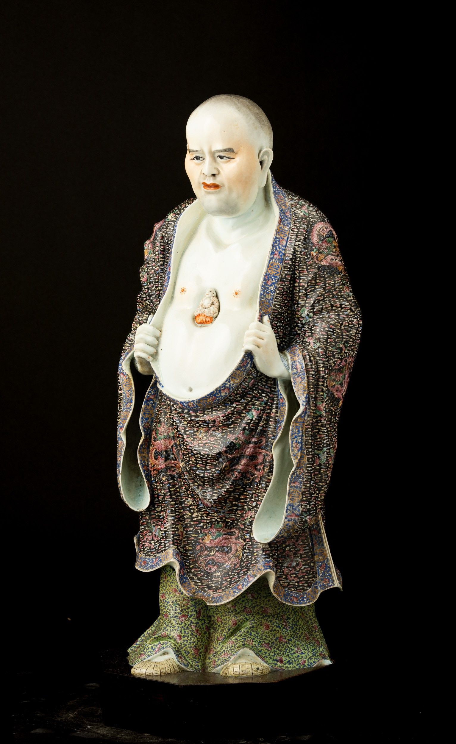 Rara figura di Saggio Famiglia Rosa stante in porcellana a smalti policromi con [..]