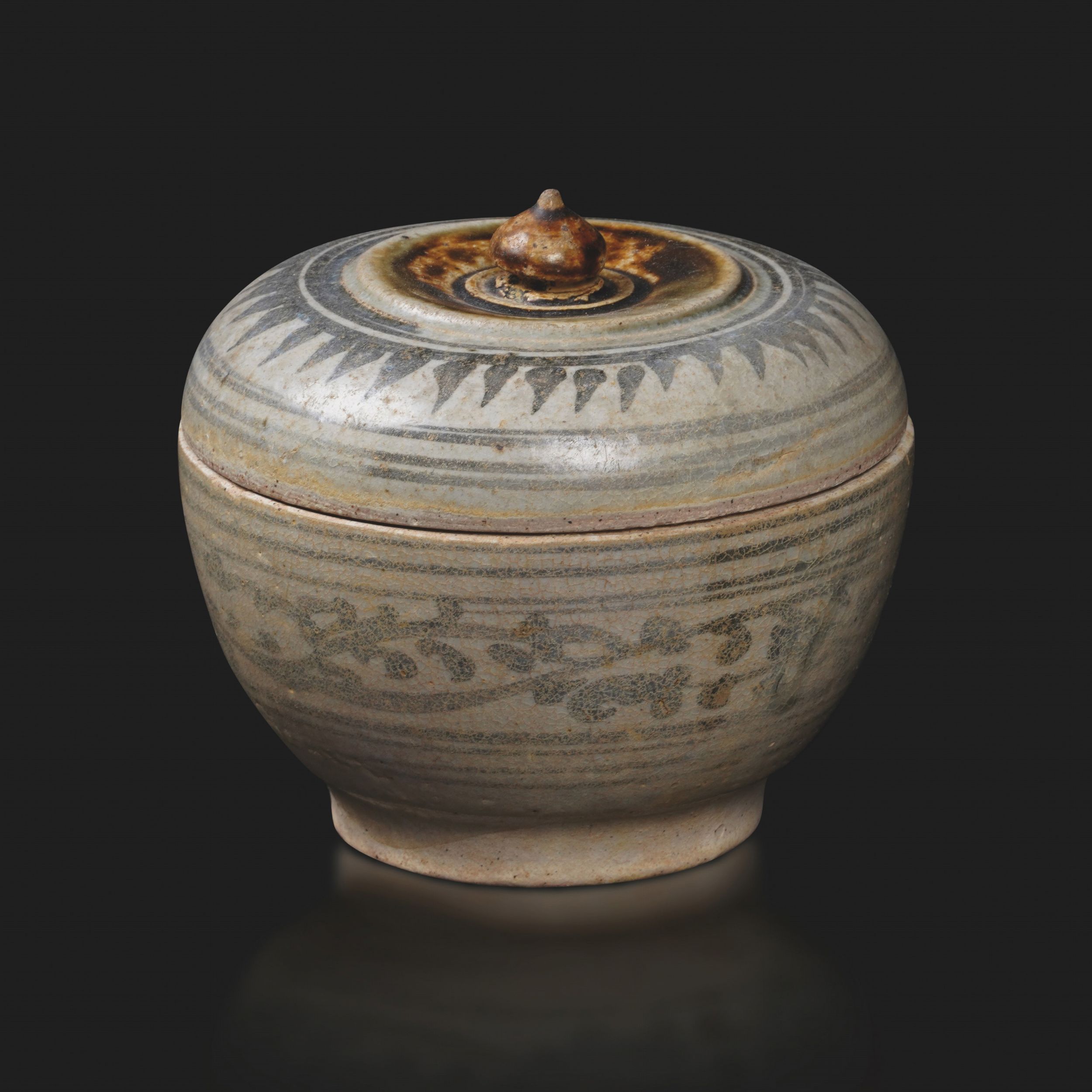 Scatola in gres con decoro naturalistico bianco e blu, Vietnam, XVII secolo