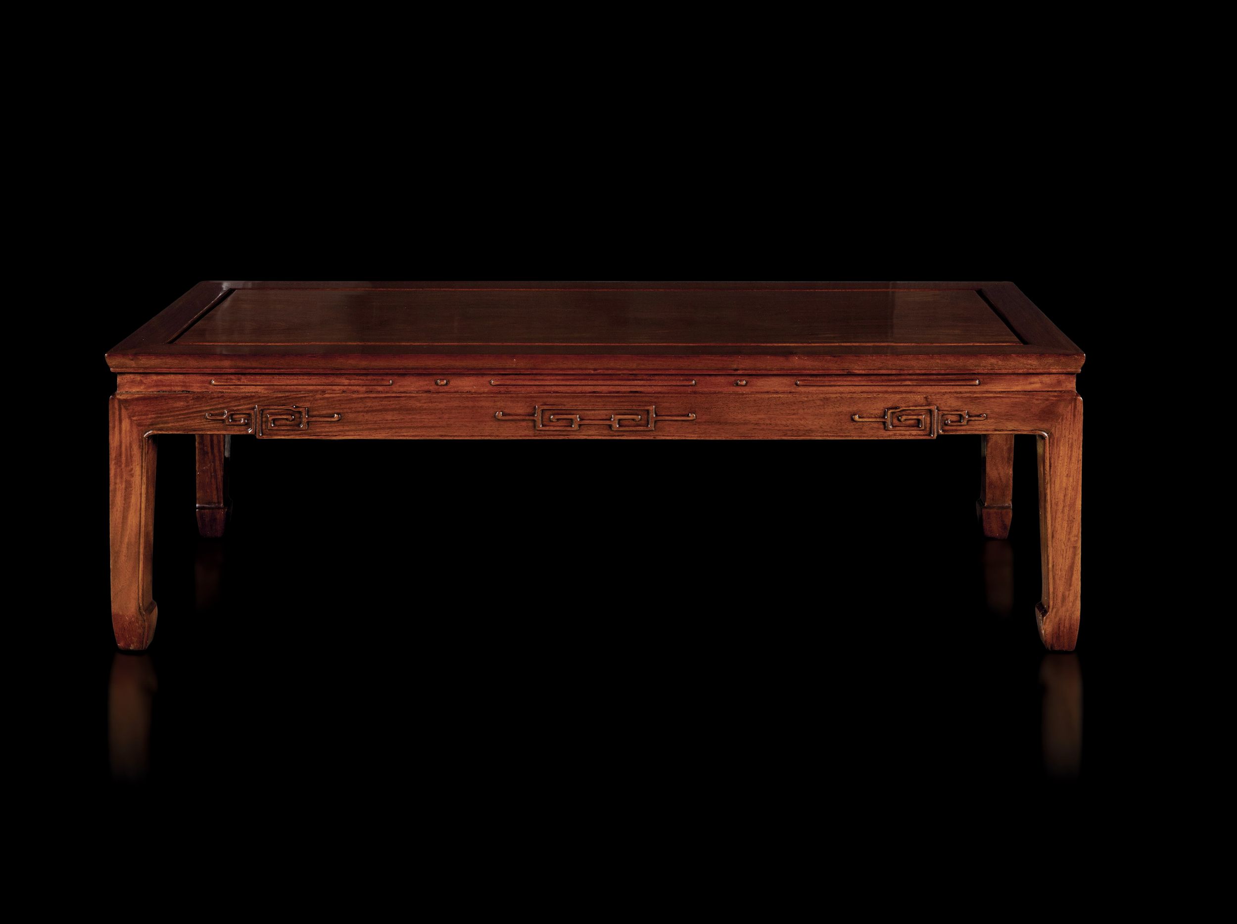 Tavolo basso in legno di Huali con decori geometrici a rilievo, Cina, Dinastia Qing, [..]
