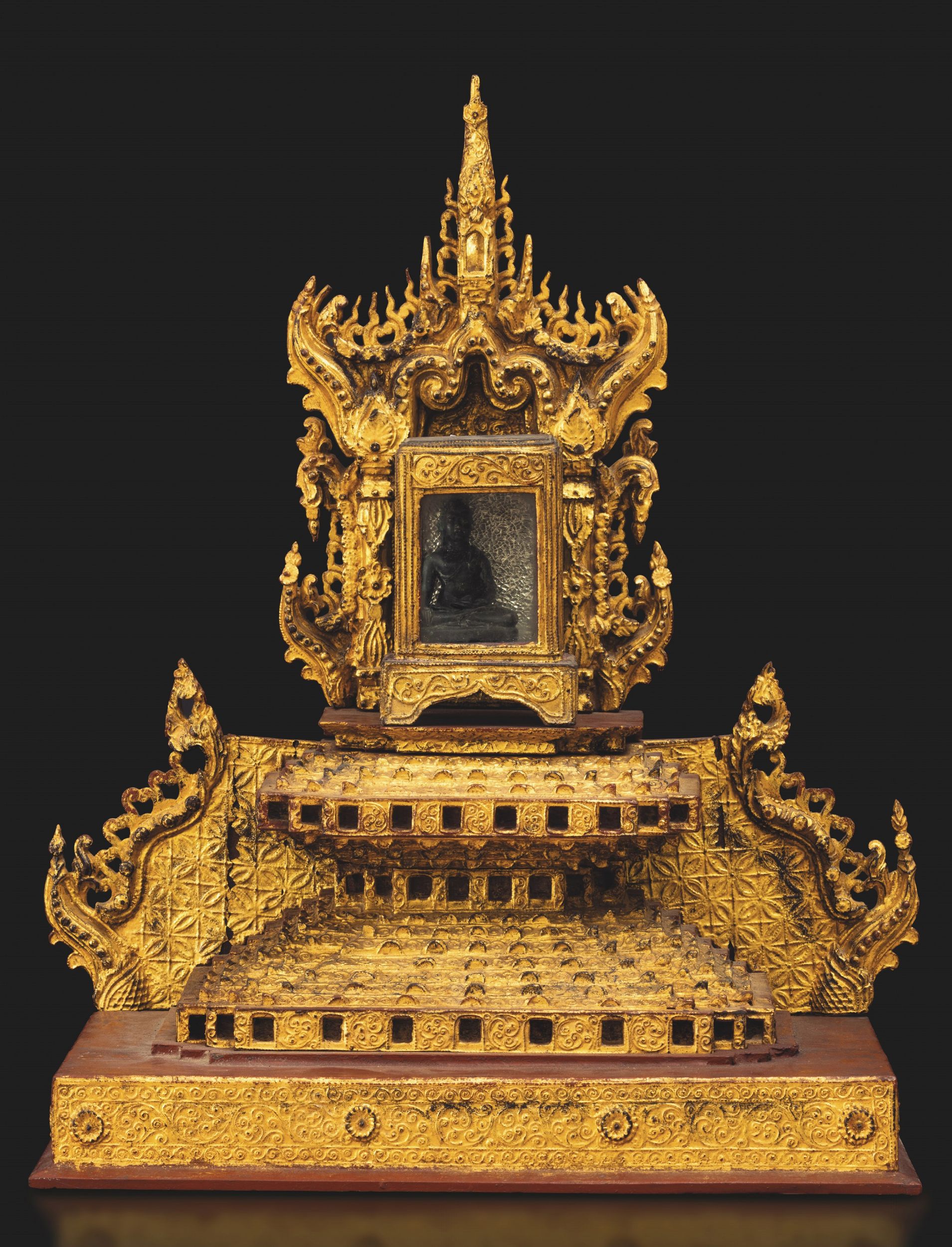 Tempio in legno scolpito con Buddha in bronzo, Thailandia, XIX secolo, Regno di [..]