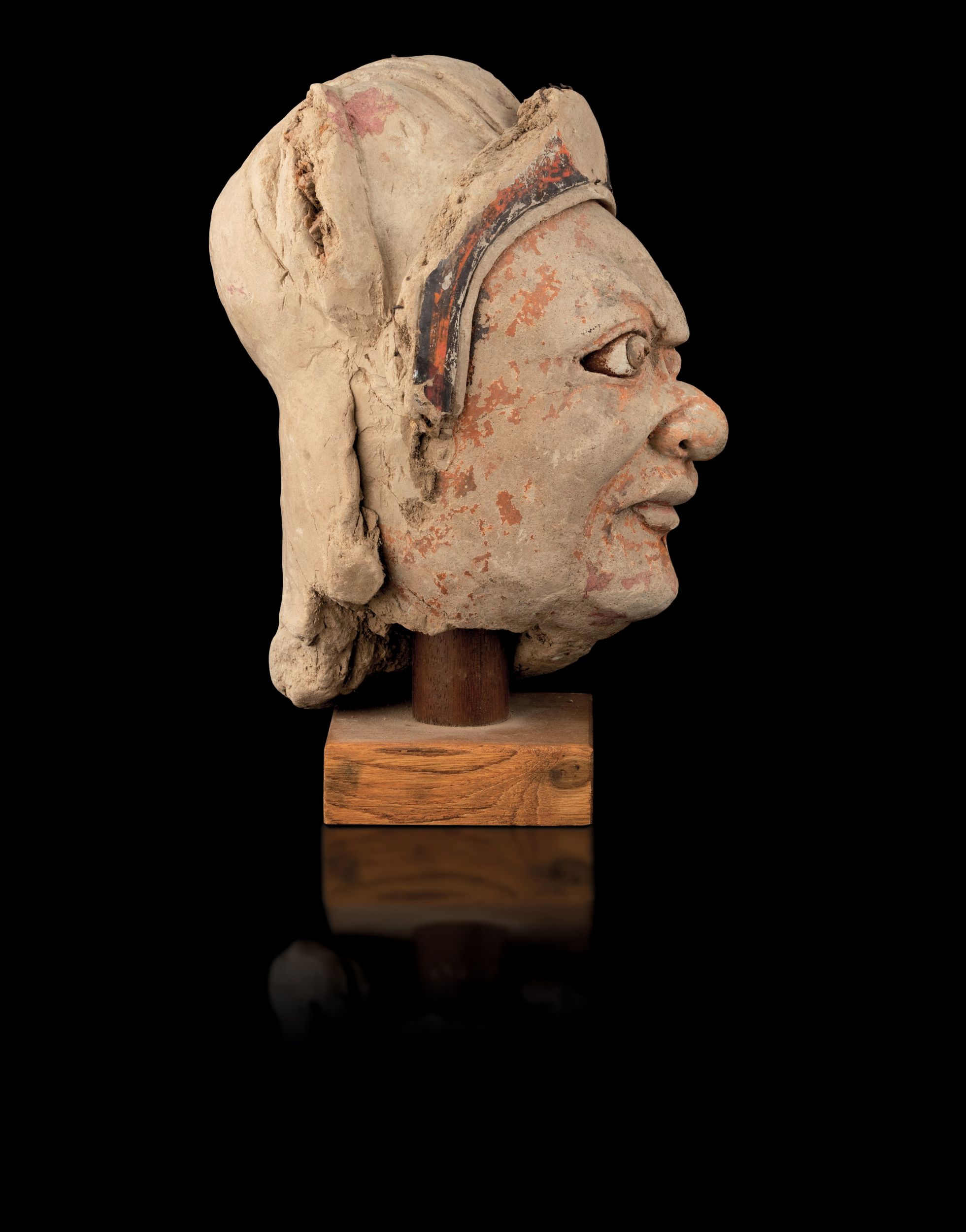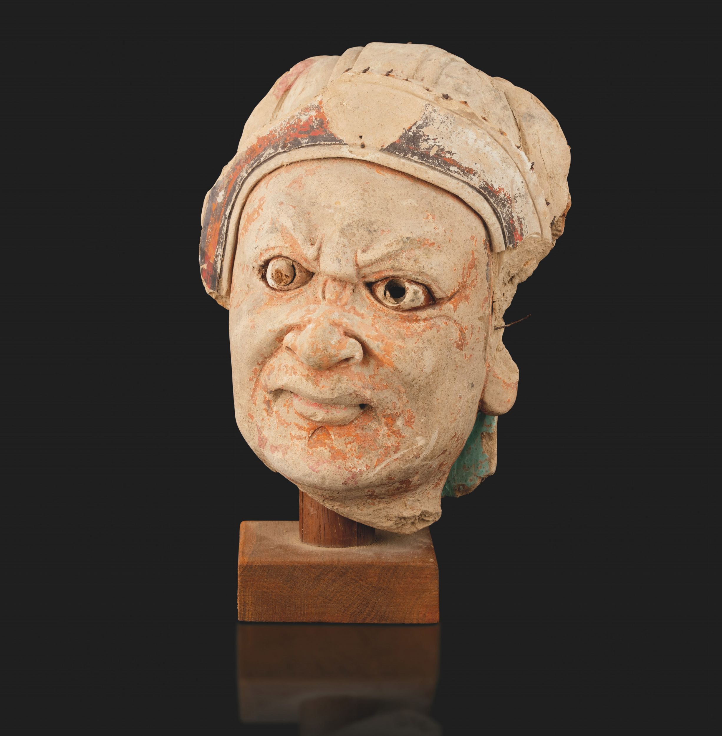 Testa in stucco con tracce di policromia, Cina, Dinastia Ming, XV secolo