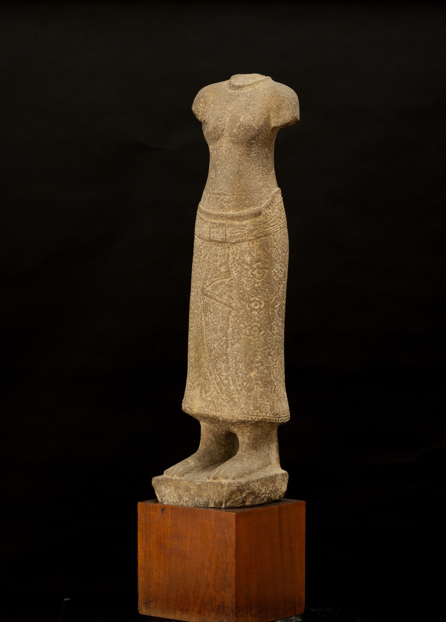 Torso femminile scolpito in pietra, India, Khemer, epoca Bayon (1160-1230)