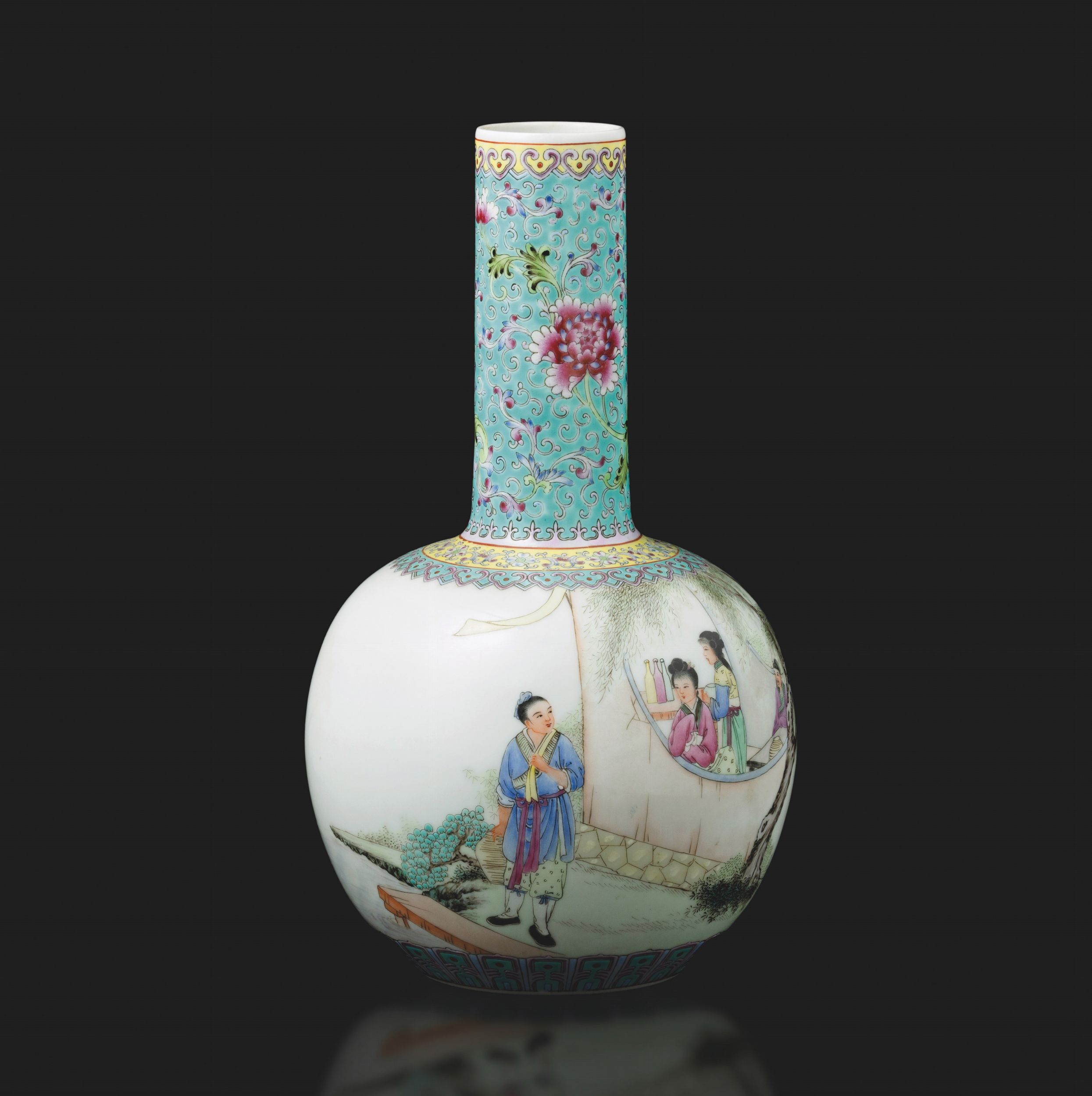 Vaso in porcellana Famiglia Rosa con motivi floreali e giovani donne con scena di [..]