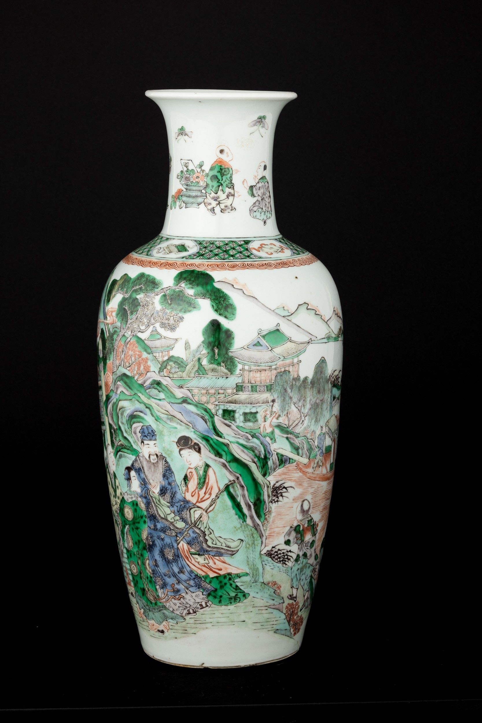 Vaso in porcellana Famiglia Verde con paesaggio e personaggi, Cina, XIX secolo