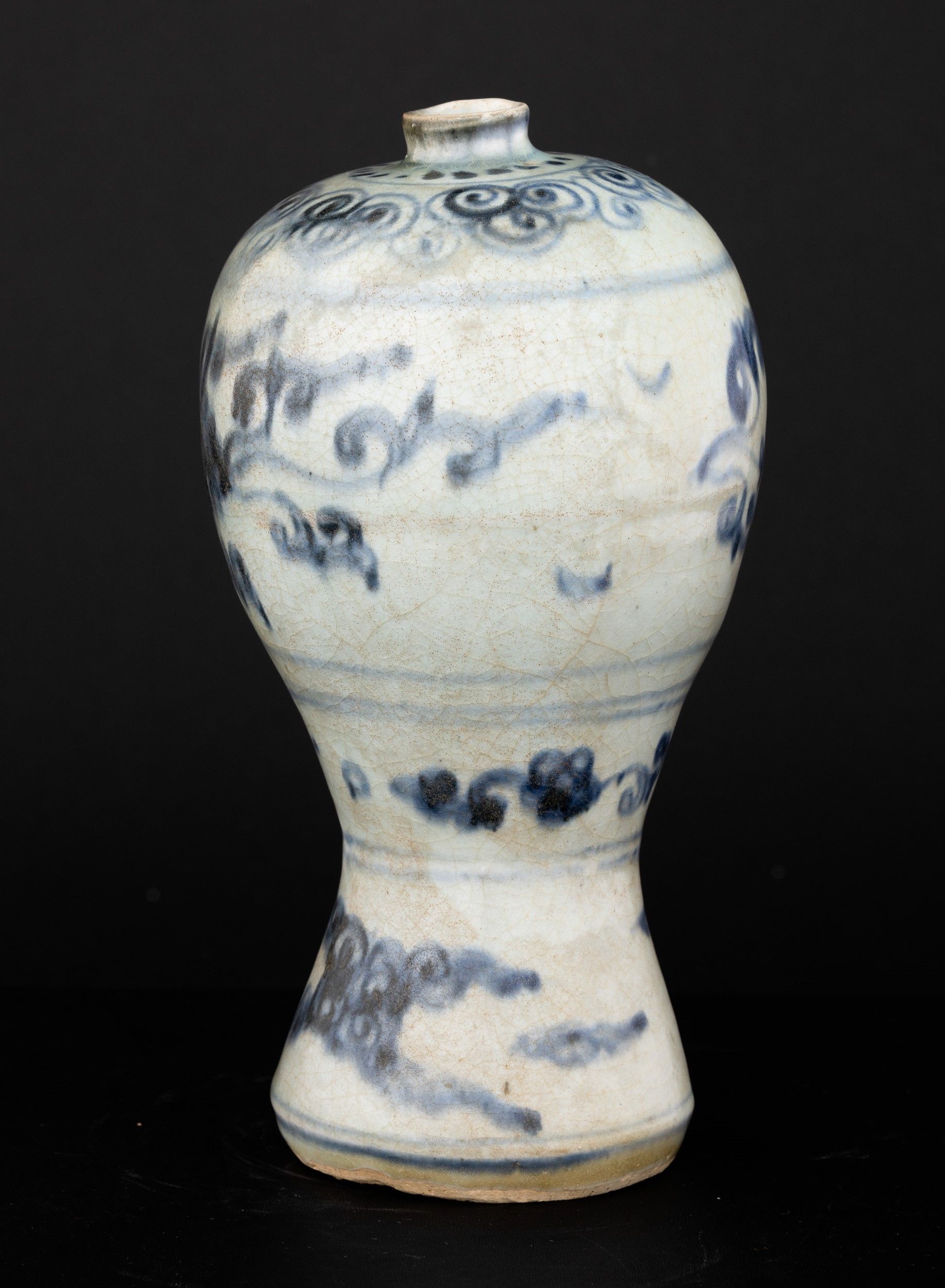 Vaso Meiping in porcellana con decoro bianco e blu a soggetto geometrico e floreale, [..]
