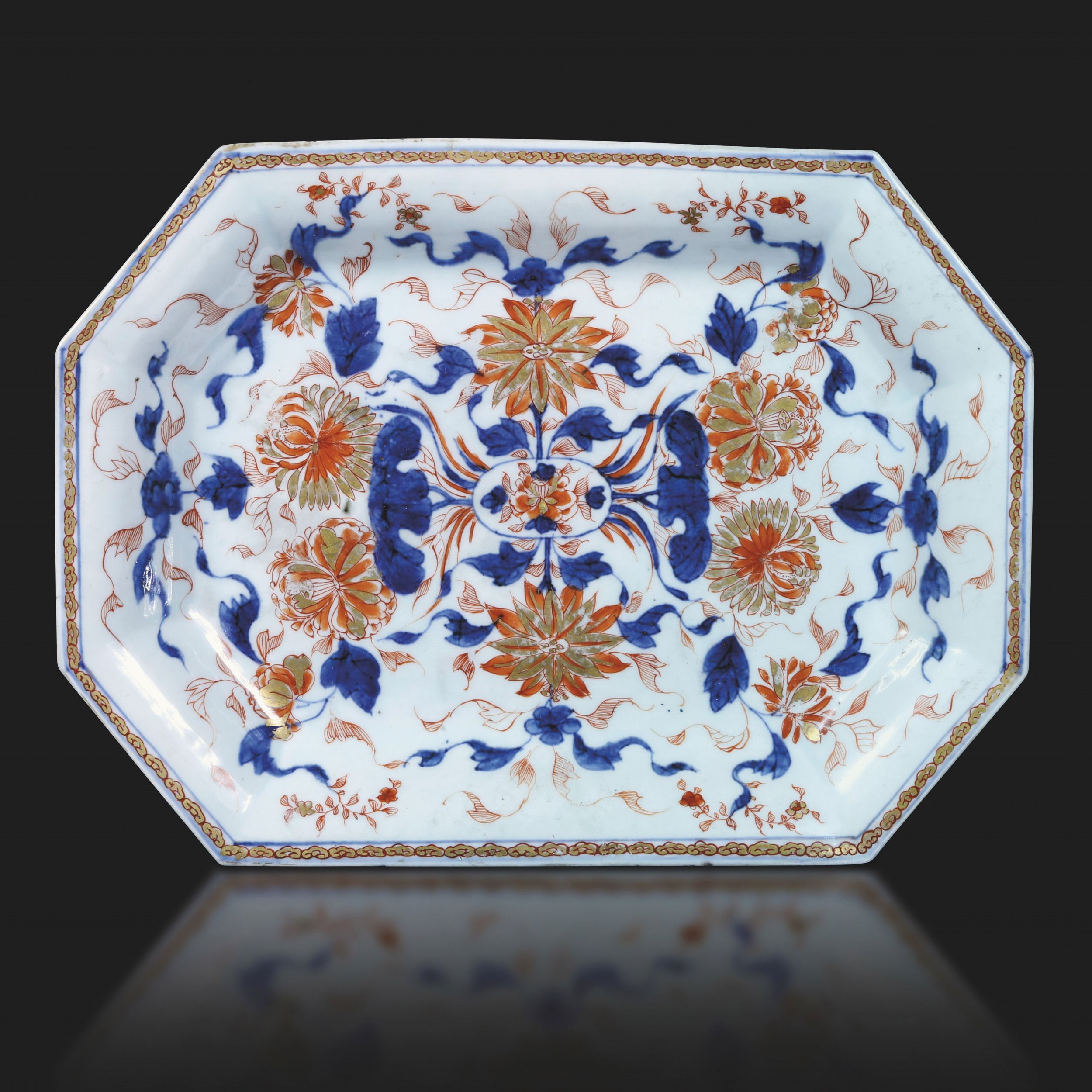 Vassoio in porcellana a decoro floreale, Cina, Dinastia Qing, XVIII secolo