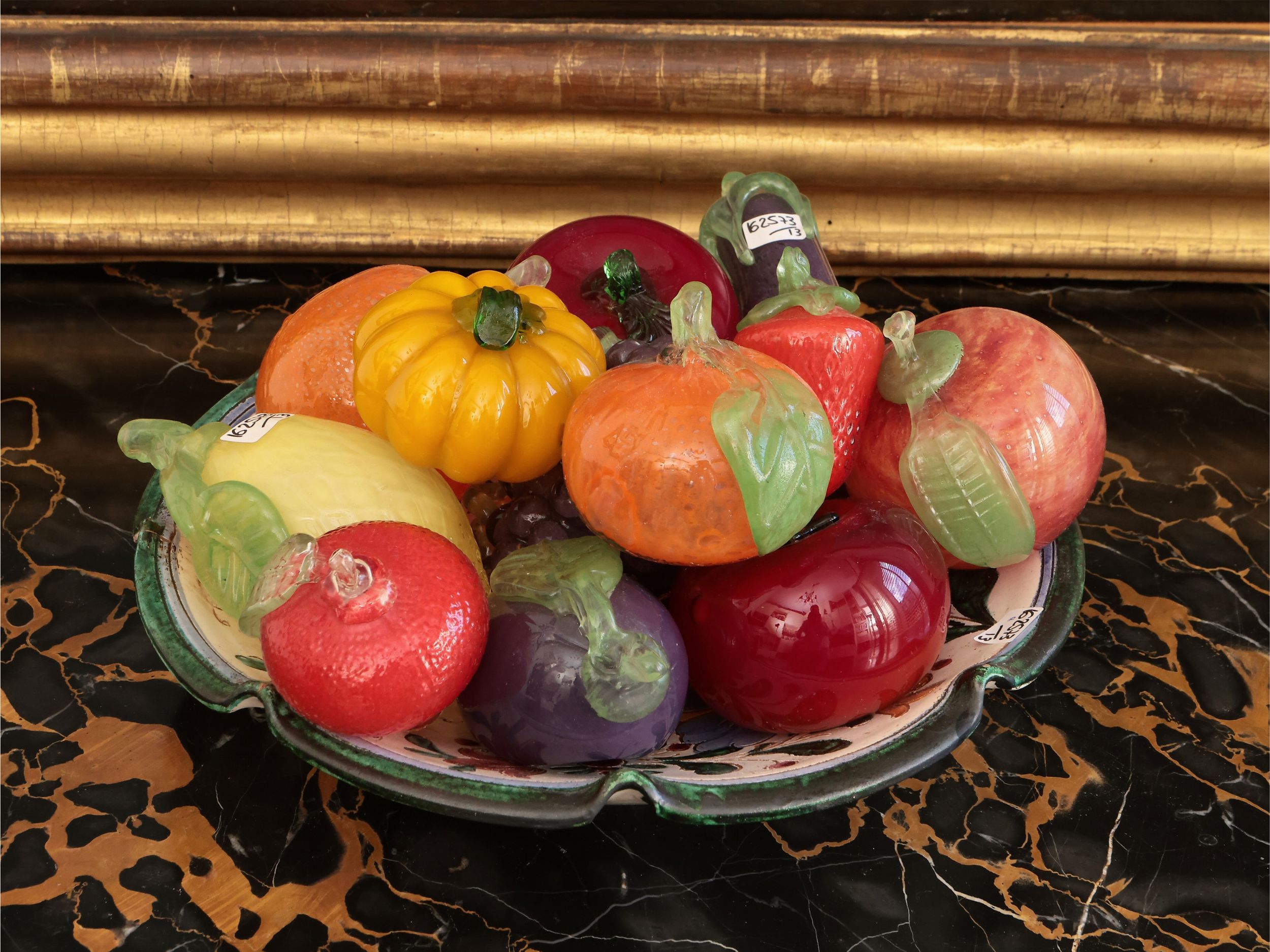 Assortimento di frutti e ortaggi in vetro soffiato policromo