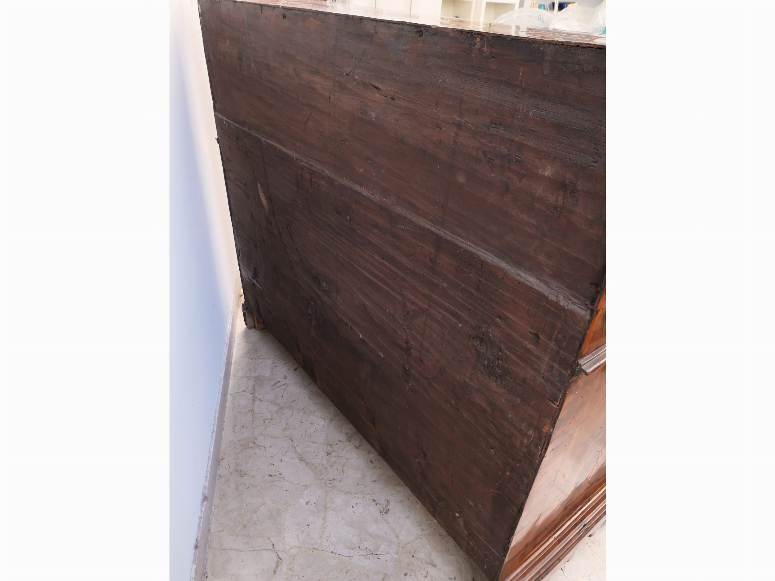 Cassettone a ribalta impiallacciato in noce e radica di noce