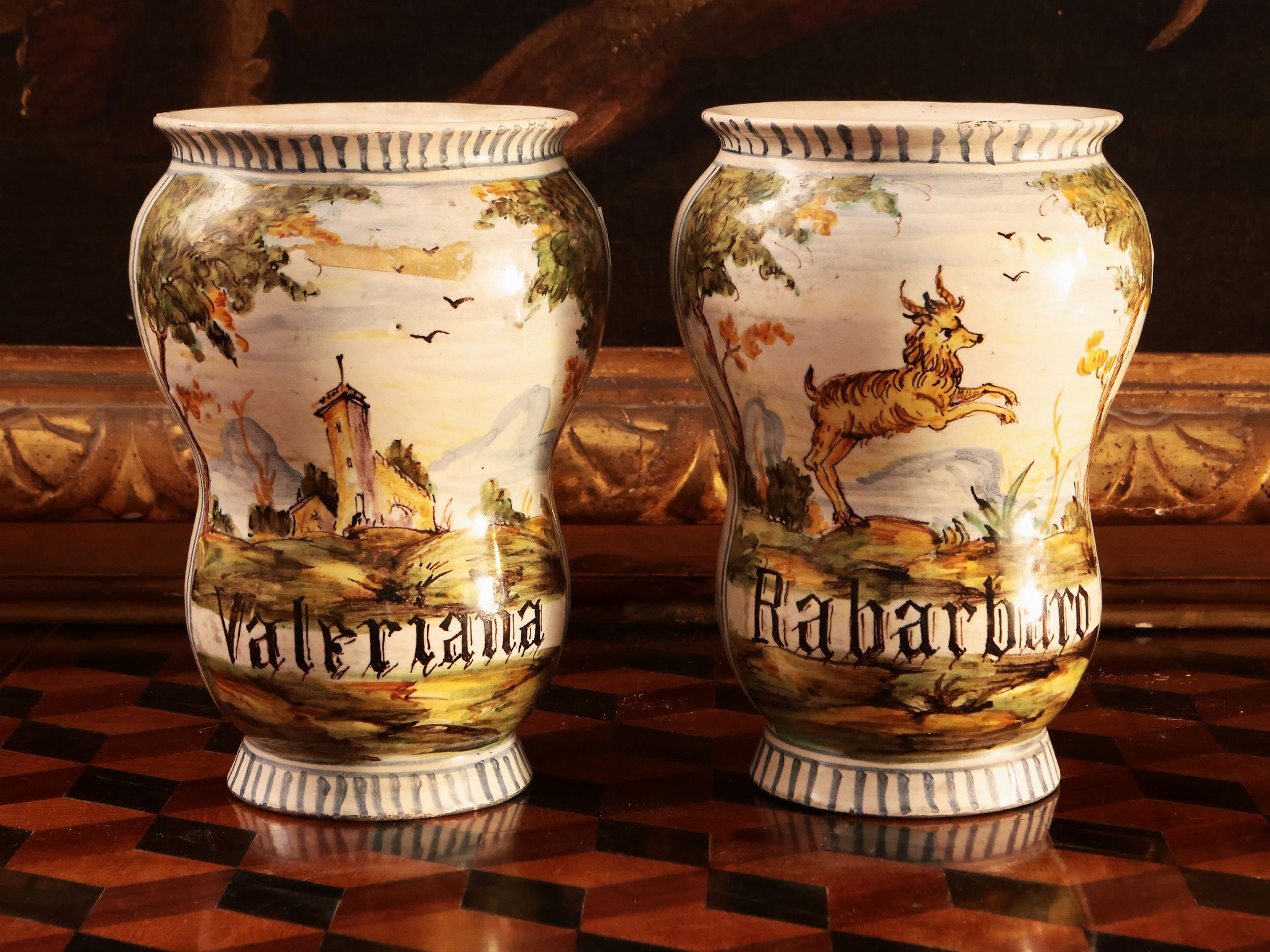 Coppia di albarelli da farmacia in maiolica