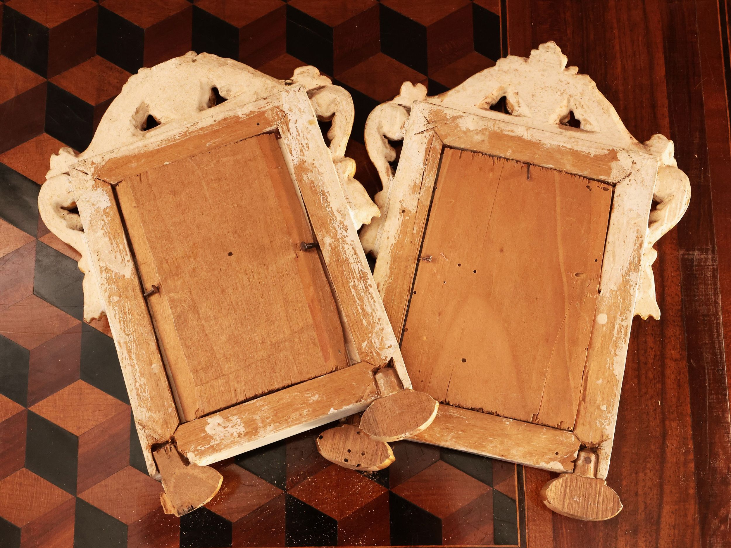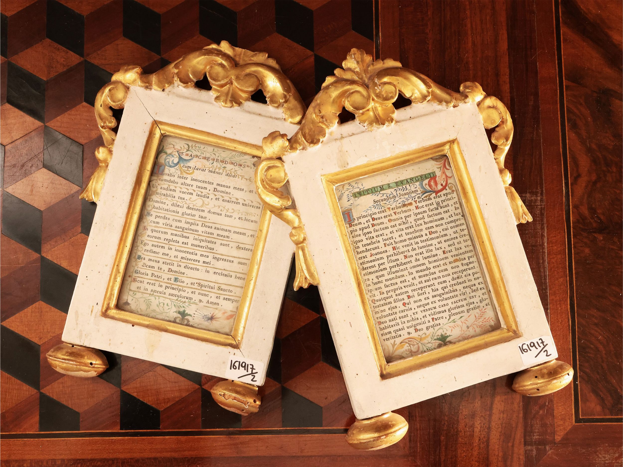 Coppia di cartagloria in legno intagliato, laccato e dorato