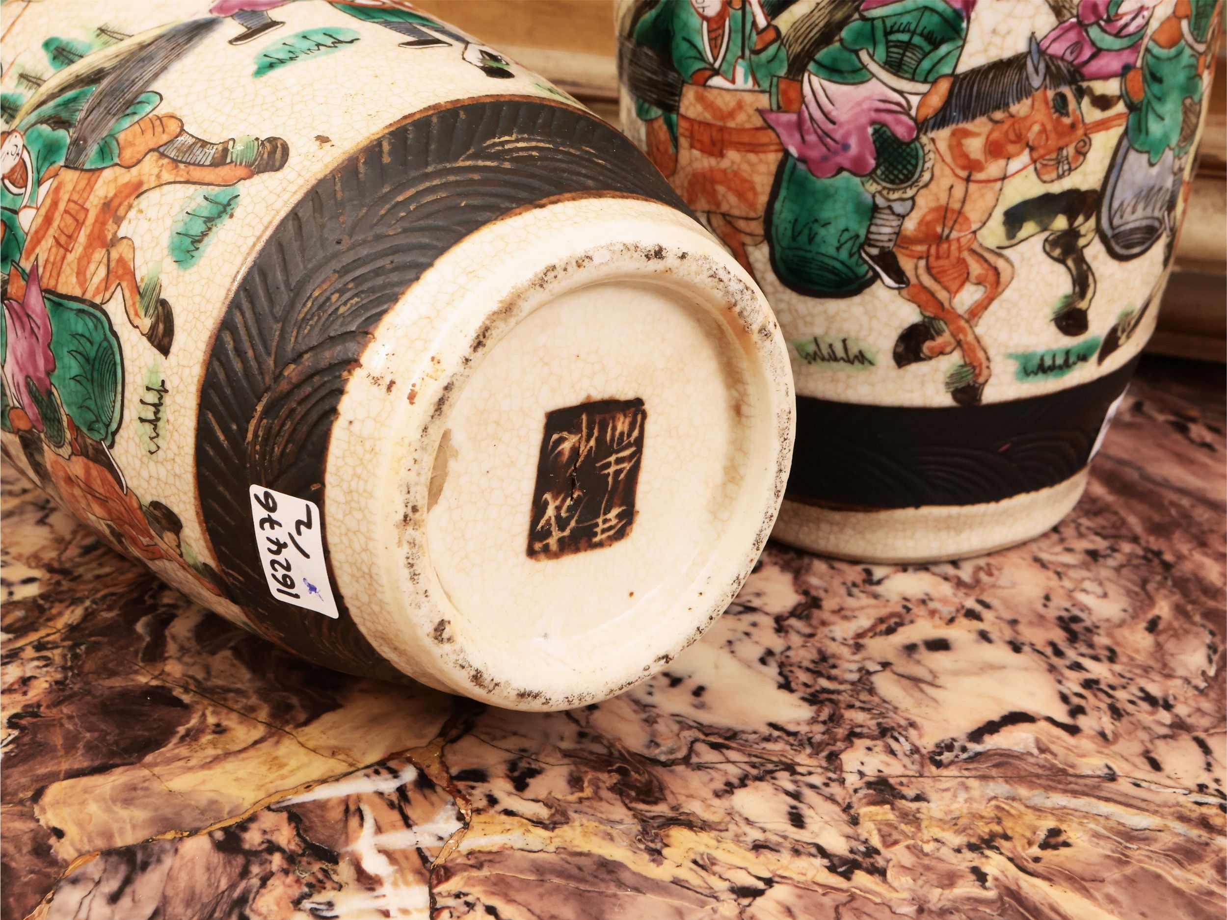 Cina, XIX/XX secolo a balaustro, dipinti a smalto con scene di battaglia, collare con motivi zoomorfi a tutto tondo