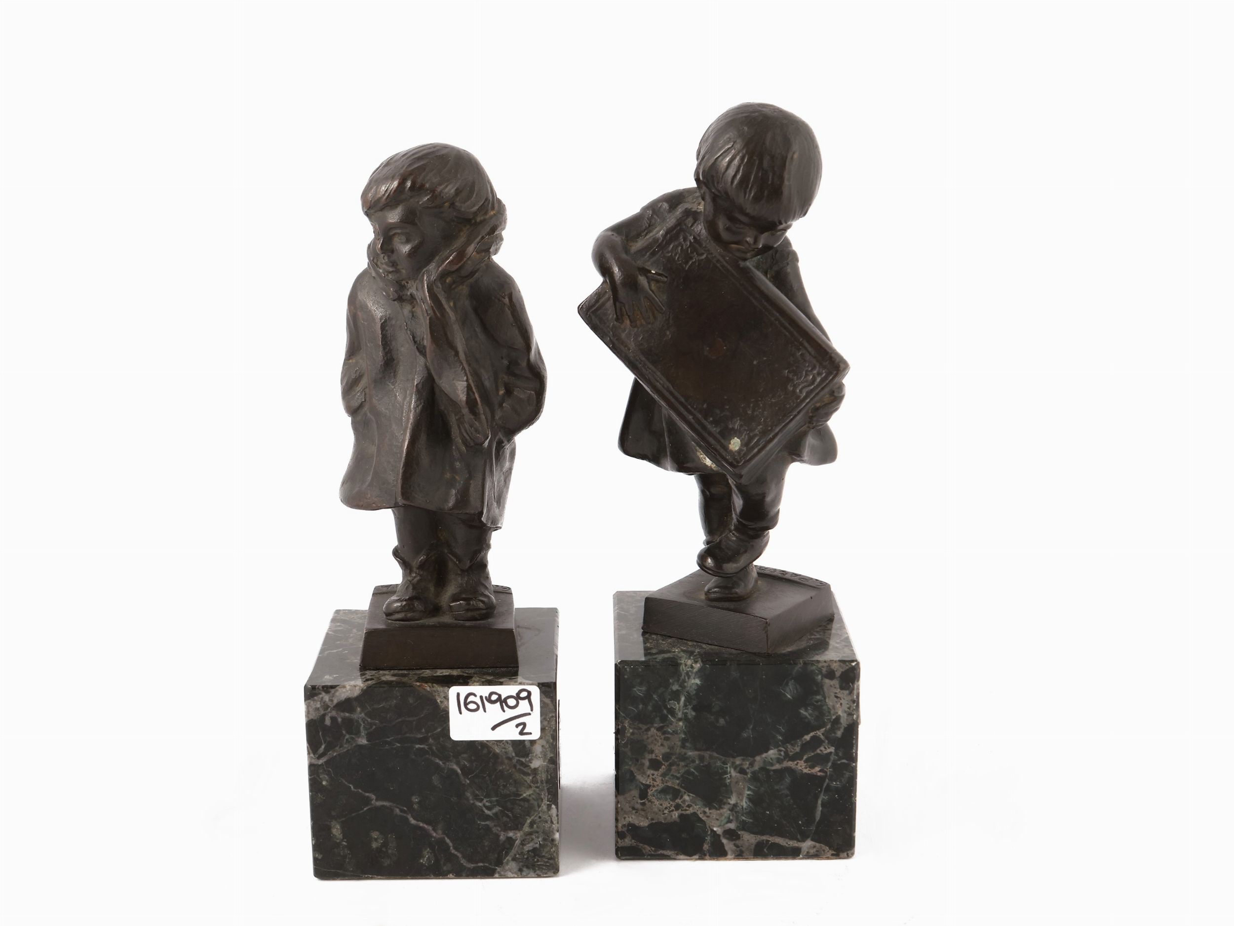 (1879-1956) due sculture in bronzo, firmate, con base in marmo verde