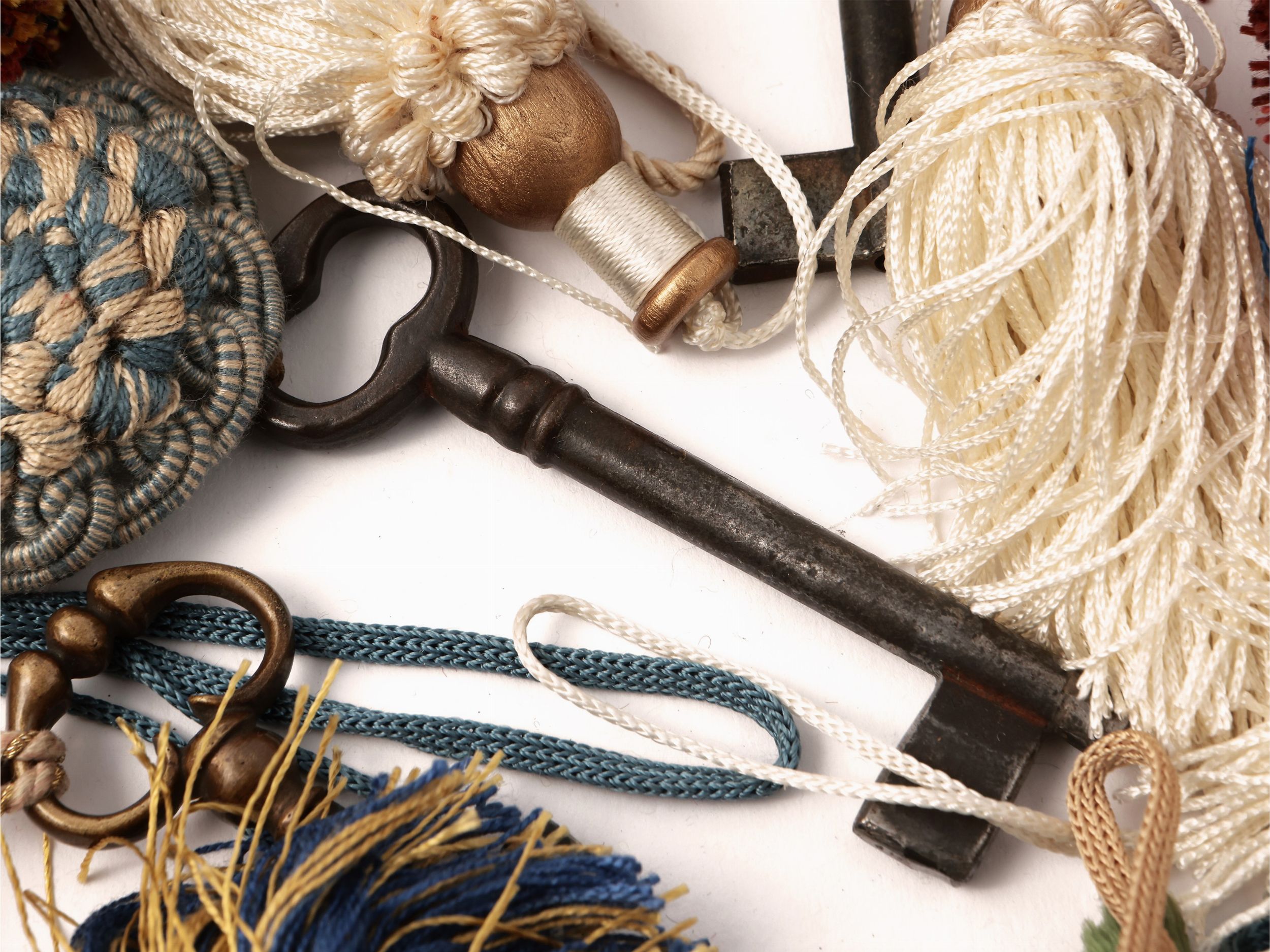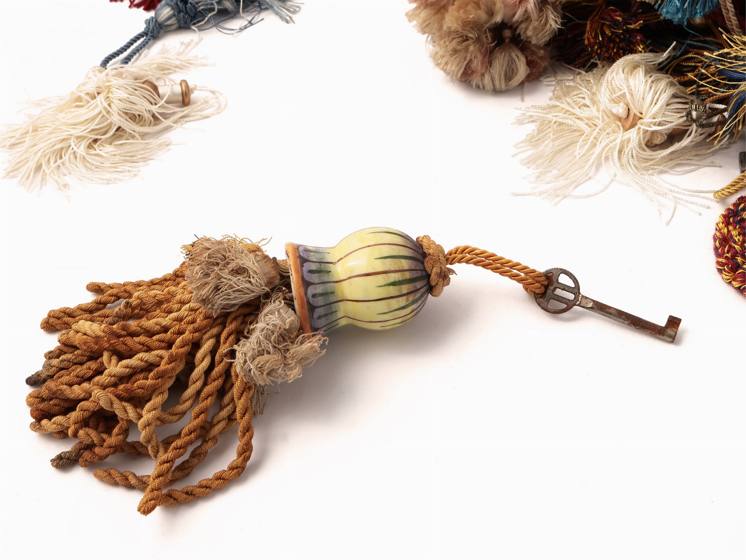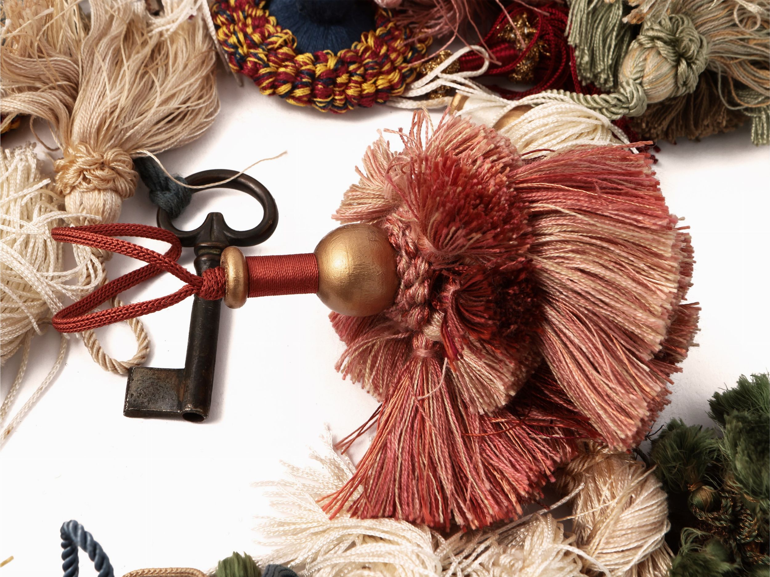 Grande assortimento di nappe da tenda e coprichiodi in tessuto