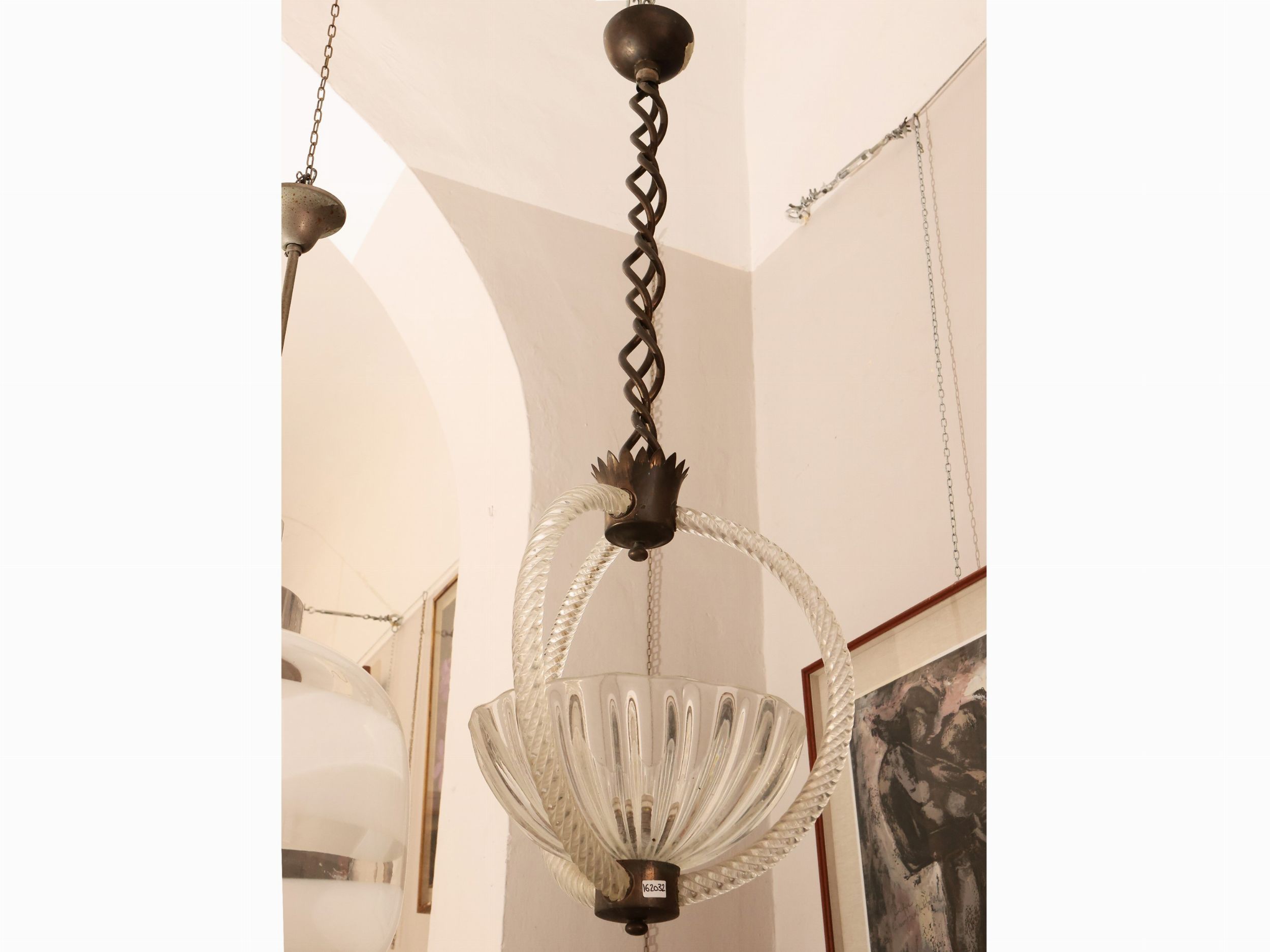 XX secolo coppa centrale realizzata come conchiglia, sostenuta da tre corde in vetro a torchon, lievi difetti