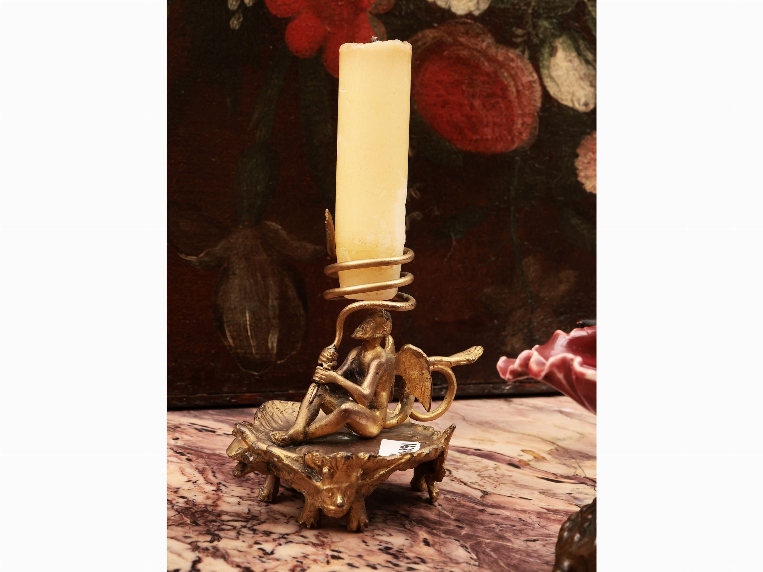 inizio del XX secolo una saliera in ceramica a foggia di conchiglia sorretta da puttino in metallo, una bugia ed un campanello di servizio in ottone decorati da diavoletti
