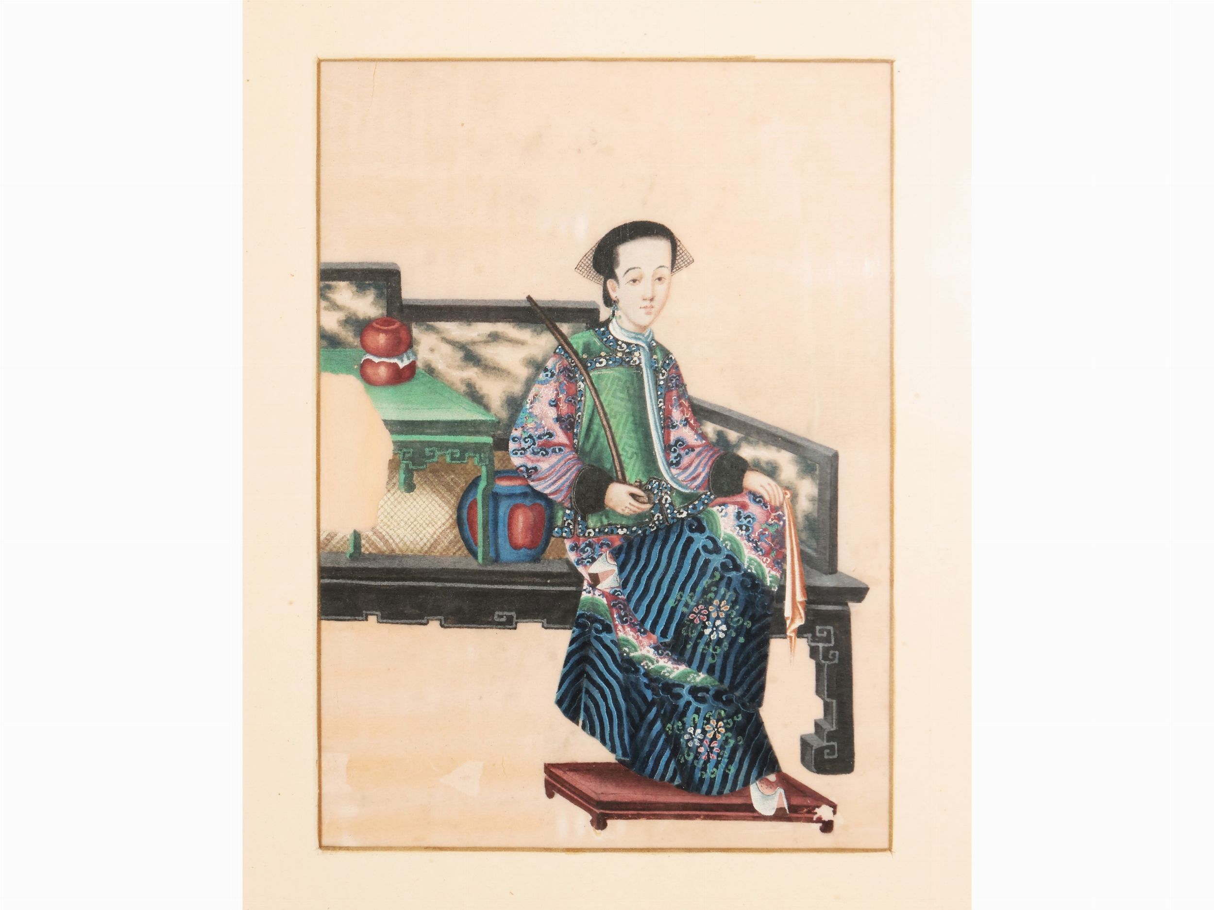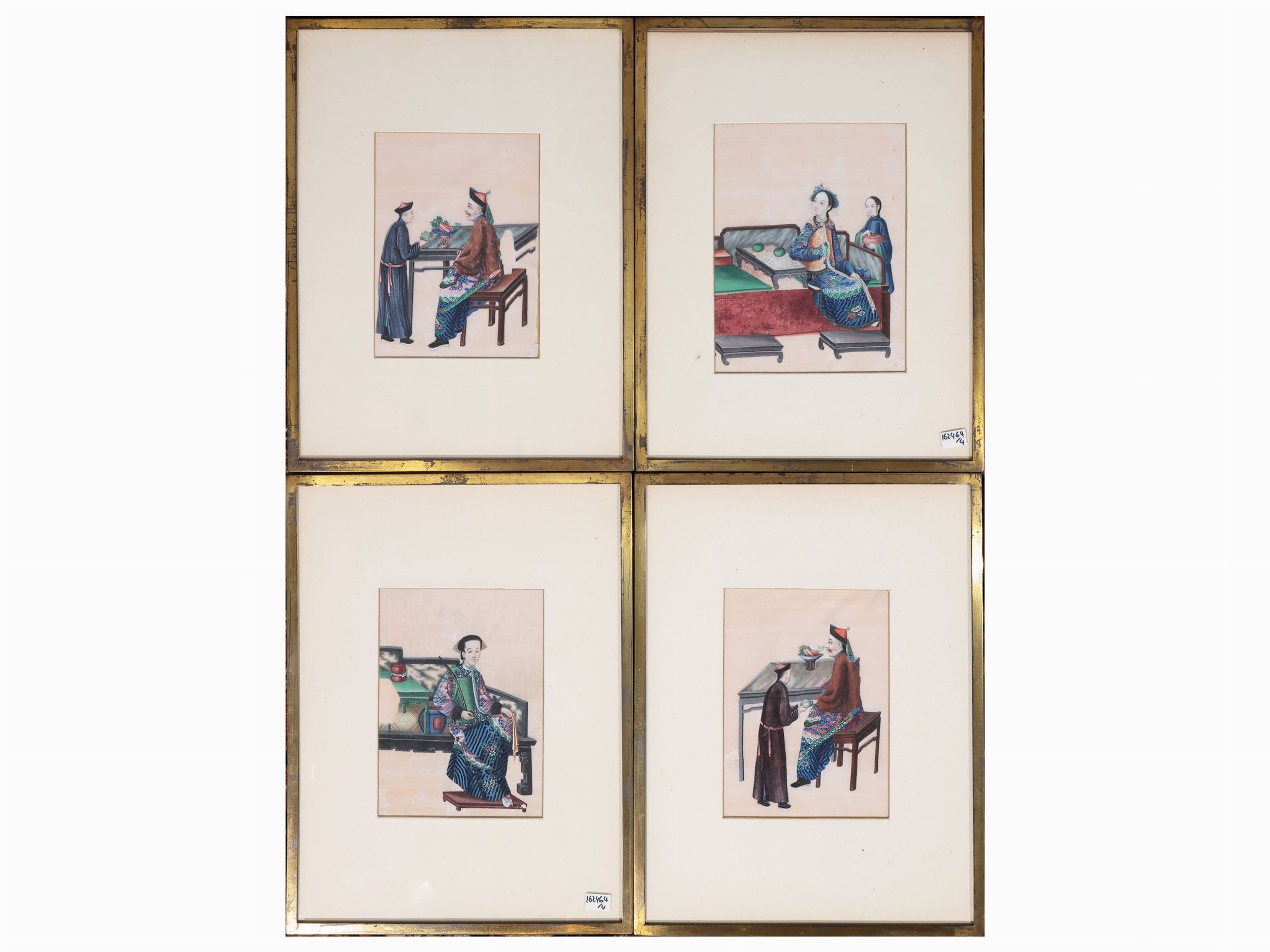 Cina, XIX secolo serie di quattro tempere su seta, in cornice