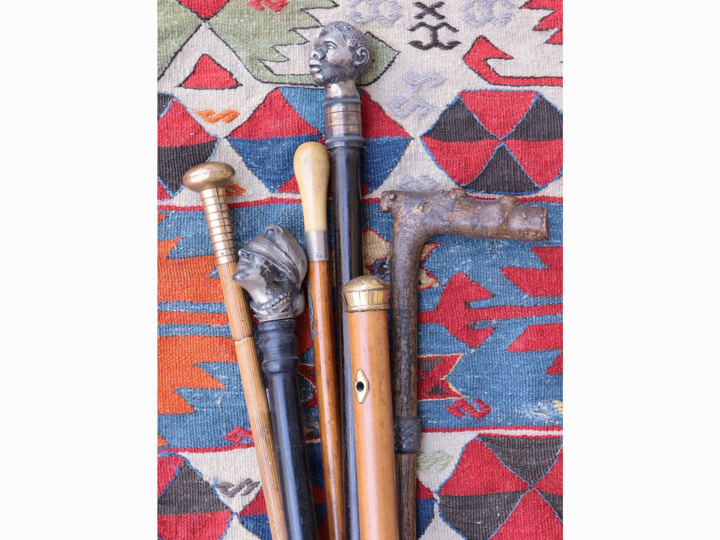 inizio del XX secolo uno con manico in argento a foggia di Dea bendata ed uno in metallo cesellato come una testa di moro
