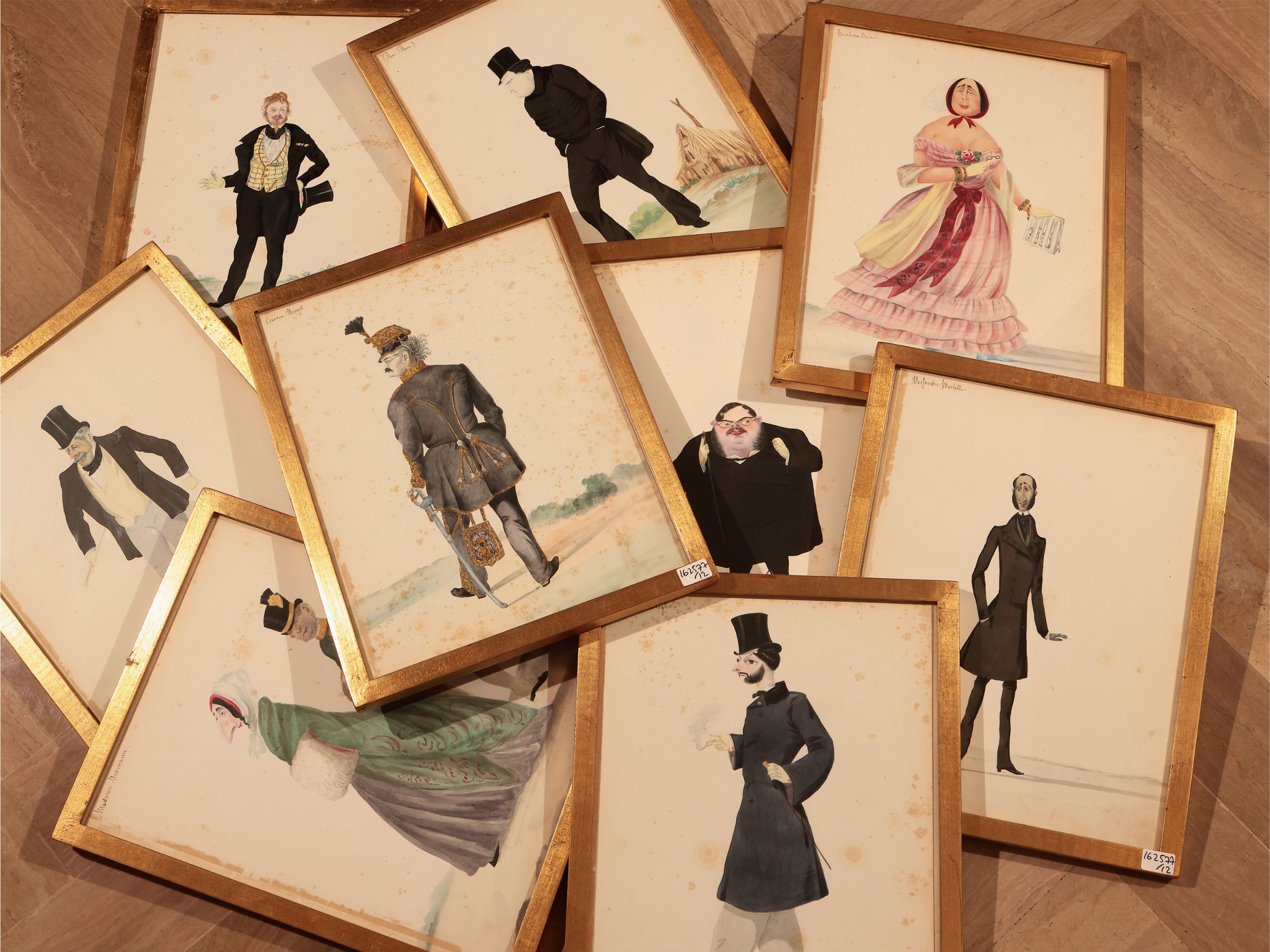 tra cui si riconoscono Alessandro Martelli, il conte Lao Bentivoglio, la contessa Orsini, acquarello su carta, alcuni recano indicazione del personaggio ritratto