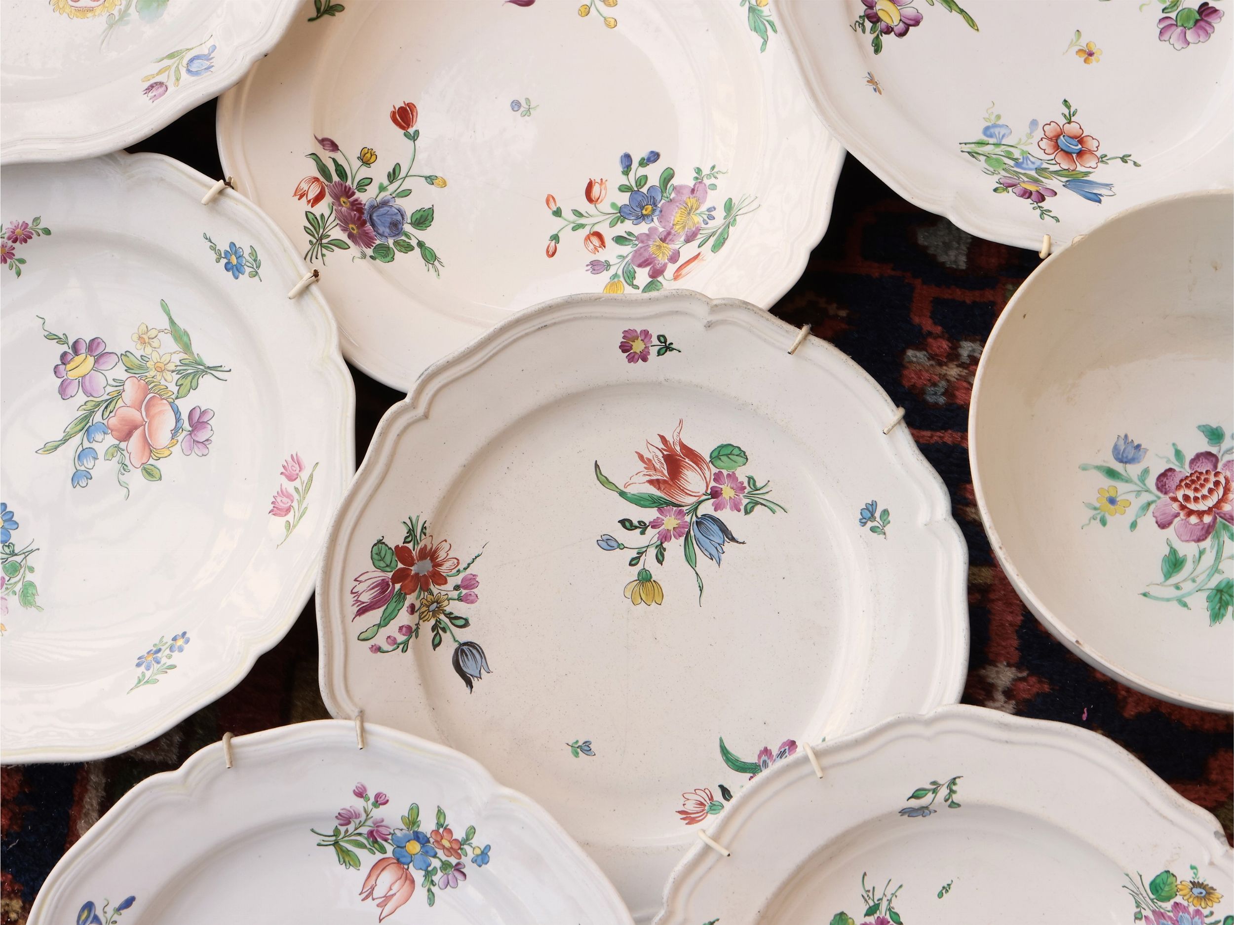 Ginori, inizio dell XIX secolo dipinti con il motivo del mazzetto, abbinati ad una ciotola simile, restauri