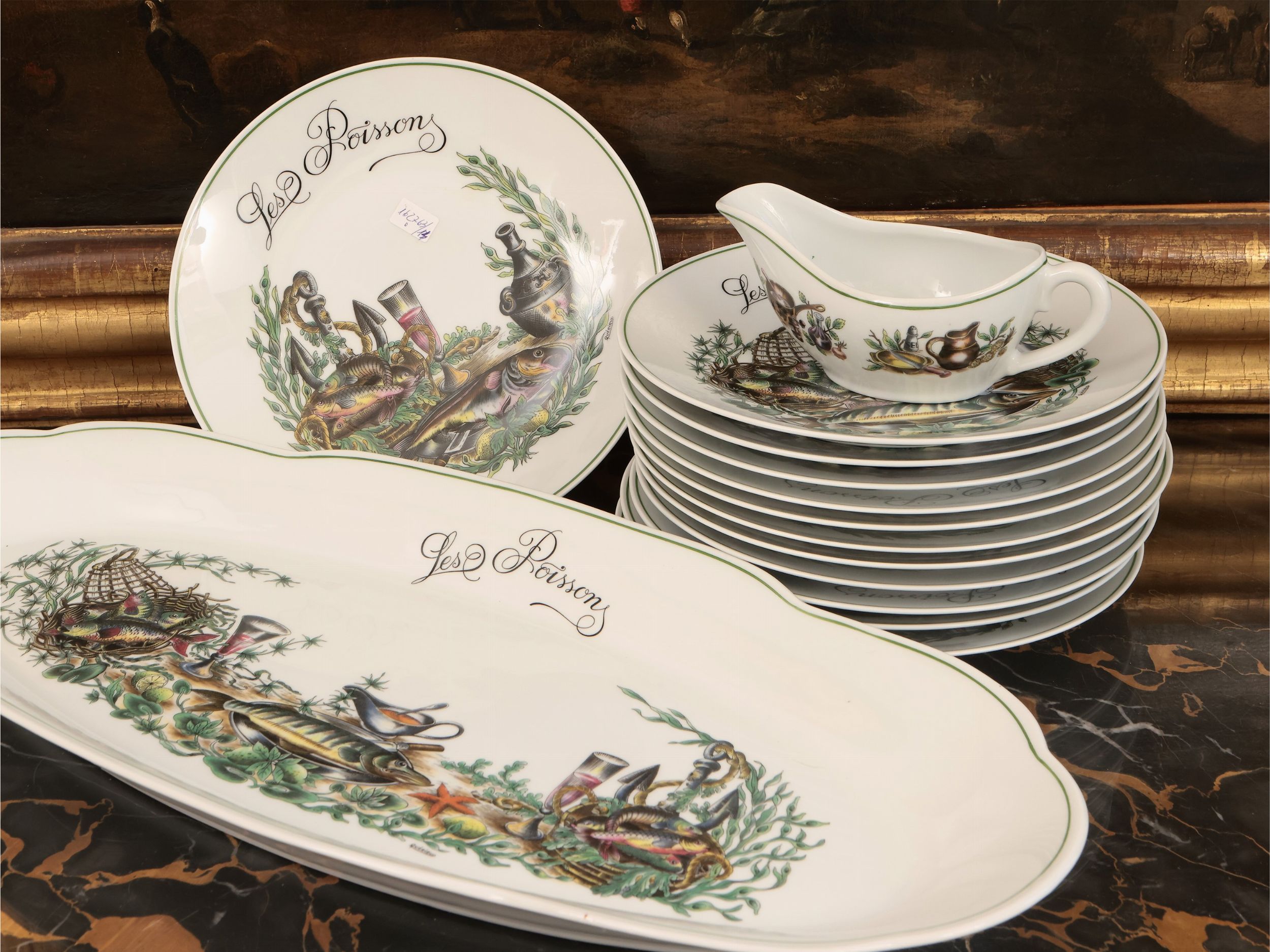 Servizio di piatti per zuppa di pesce in porcellana francese