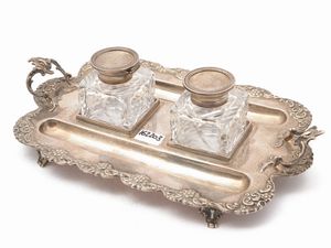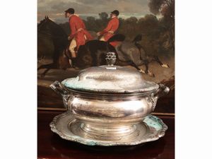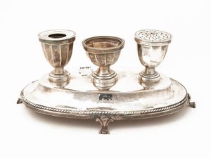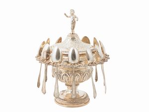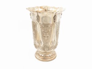 gr 2300, h cm 28 in parte del XIX secolo di gusto Impero, realizzato come un vaso baccellato con fascia sbalzata [..]