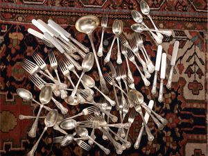 lungh da cm 39 a cm 90 (7) inizio del XX secolo tre con manici in argento cesellato, due in legno, uno in corno, [..]