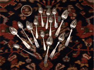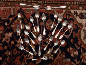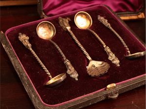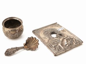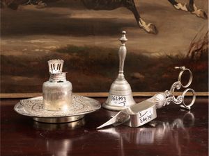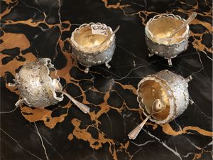 gr netti 30 inizio del XX secolo di forma romboidale, cesellate a volute, interni in vetro trasparente