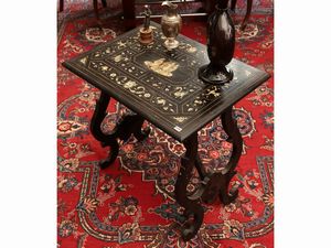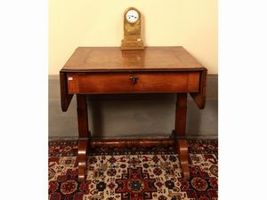 h cm 79x130x63 metà del XIX secolo un cassetto nella fascia, doppi sostegni con dettagli in legno ebanizzato, [..]