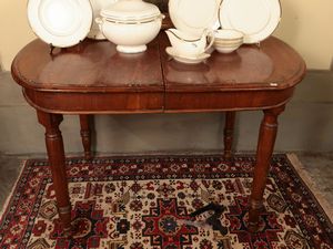 metà del XIX secolo piano ovale, sostegno centrale tornito su quattro piedi a ricciolo, lievi difetti