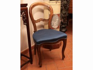 h cm 92,5 (6) seconda metà del XIX secolo schienale centinato con cartella a giorno, seduta imbottita e rivesta [..]