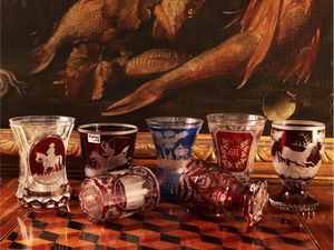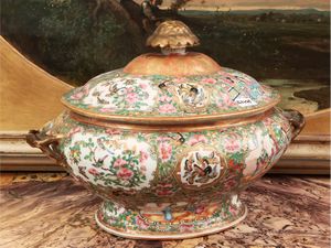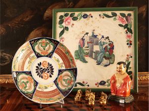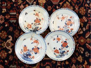 diam cm 23 Cina, XIX/XX secolo dipinti con motivi floreali in blu e arancio e lumeggiati in oro, tutti presentano [..]
