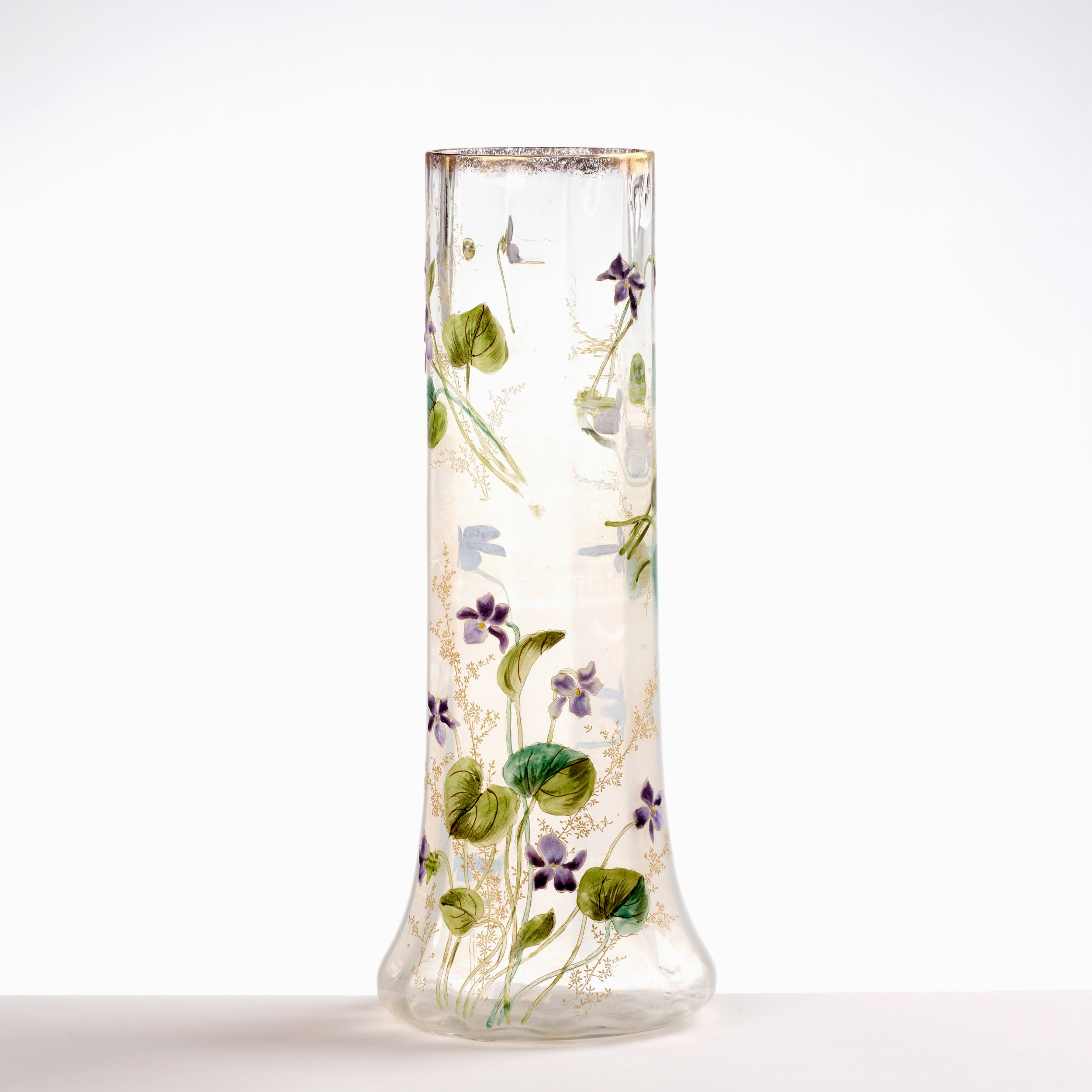 fine XIX - inizio XX secolo Decoro a fiori in pasta di vetro e bordo dorato.