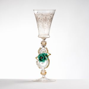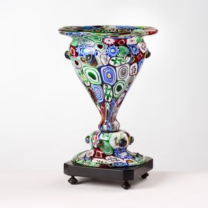Decoro in pasta di vetro colorata, cm 28 h, Murano, XIX secolo.