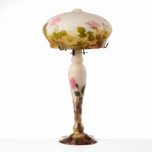 Decoro a cammeo a motivo floreale, cm 81,5 h. Firma sul corpo: Daum Nancy.