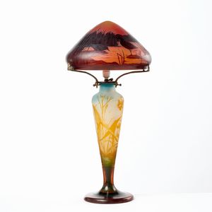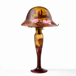 Decoro a cammeo con paesaggio lacustre, cm 63 h. Firma sul corpo: Gallé.
