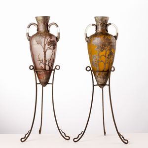 Pasta di vetro lavorata all'acido, cm 57x27 ø. Composta da due elementi: vaso, cm 37x15,5 ø, manifattura [..]