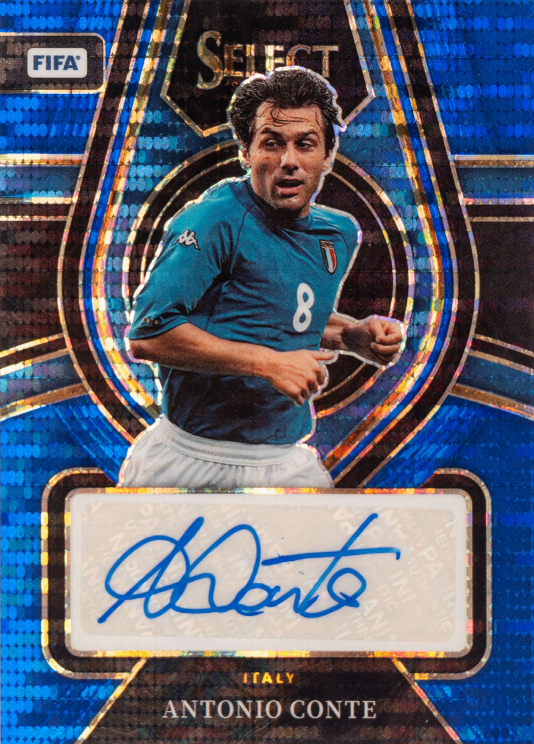 Card autografata di Antonio Conte con la maglia della nazionale italiana, pubblicata dalla Panini nel 2022/23 per la serie Select. Antonio Conte è un allenatore di calcio italiano e ex calciatore. Da giocatore, ha trascorso gran parte della sua carriera con la maglia della Juventus, vincendo numerosi trofei nazionali e internazionali. Come allenatore, ha ottenuto grande successo guidando la Juventus a tre titoli di Serie A consecutivi. Ha anche allenato la nazionale italiana e club come il Chelsea e l'Inter di Milano, con cui ha vinto la Serie A nel 2021 dopo un digiuno di oltre dieci anni per il club. Conte è noto per il suo approccio tattico rigoroso e la sua capacità di ottenere risultati con disciplina e determinazione.