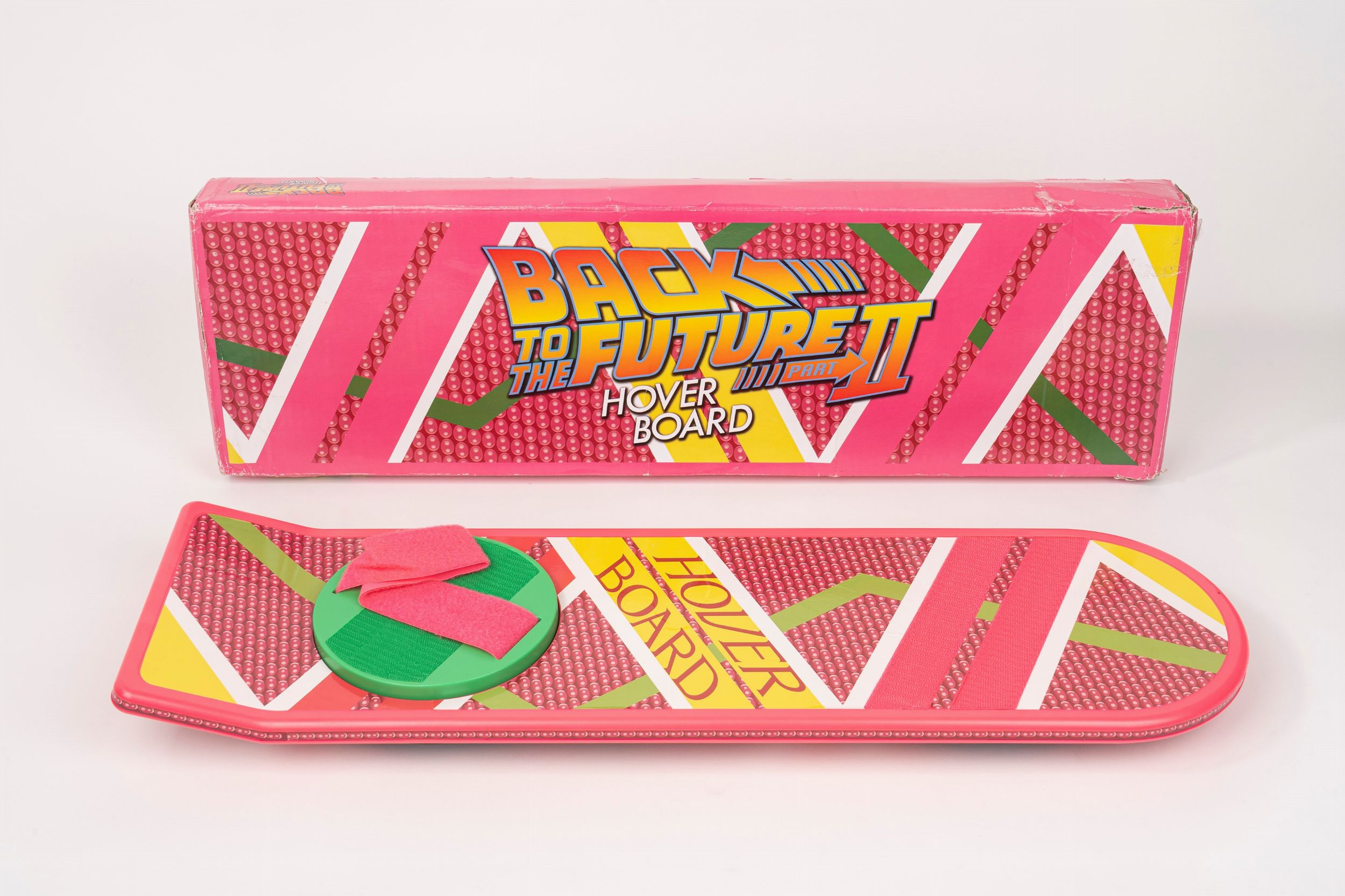 Replica del mitico hoverboard (nella versione italiana del film fu chiamato “volopattino”), uno degli oggetti più iconici della trilogia cinematografica di Ritorno al Futuro, autografato da entrambi i protagonisti della saga, Michael J. Fox e Christopher Lloyd. L’hoverboard è contenuto nella propria scatola originale che ha dei segni di usura. Nel film, Marty McFly viaggia nel futuro (1985) e scopre che le persone utilizzano questi hoverboard per spostarsi. L'hoverboard di Ritorno al Futuro è un semplice skateboard senza ruote, che fluttua nell'aria grazie a una tecnologia antigravitazionale immaginaria. Nel film non viene spiegato esattamente come funziona l'hoverboard, ma sembra che funzioni tramite magnetismo o repulsione elettrostatica. L'hoverboard utilizzato nei film era un oggetto di scena elaborato, realizzato con fibra di vetro e plexiglass. Per le scene di volo, l'attore veniva sollevato con fili o fissato a un carrello invisibile.
