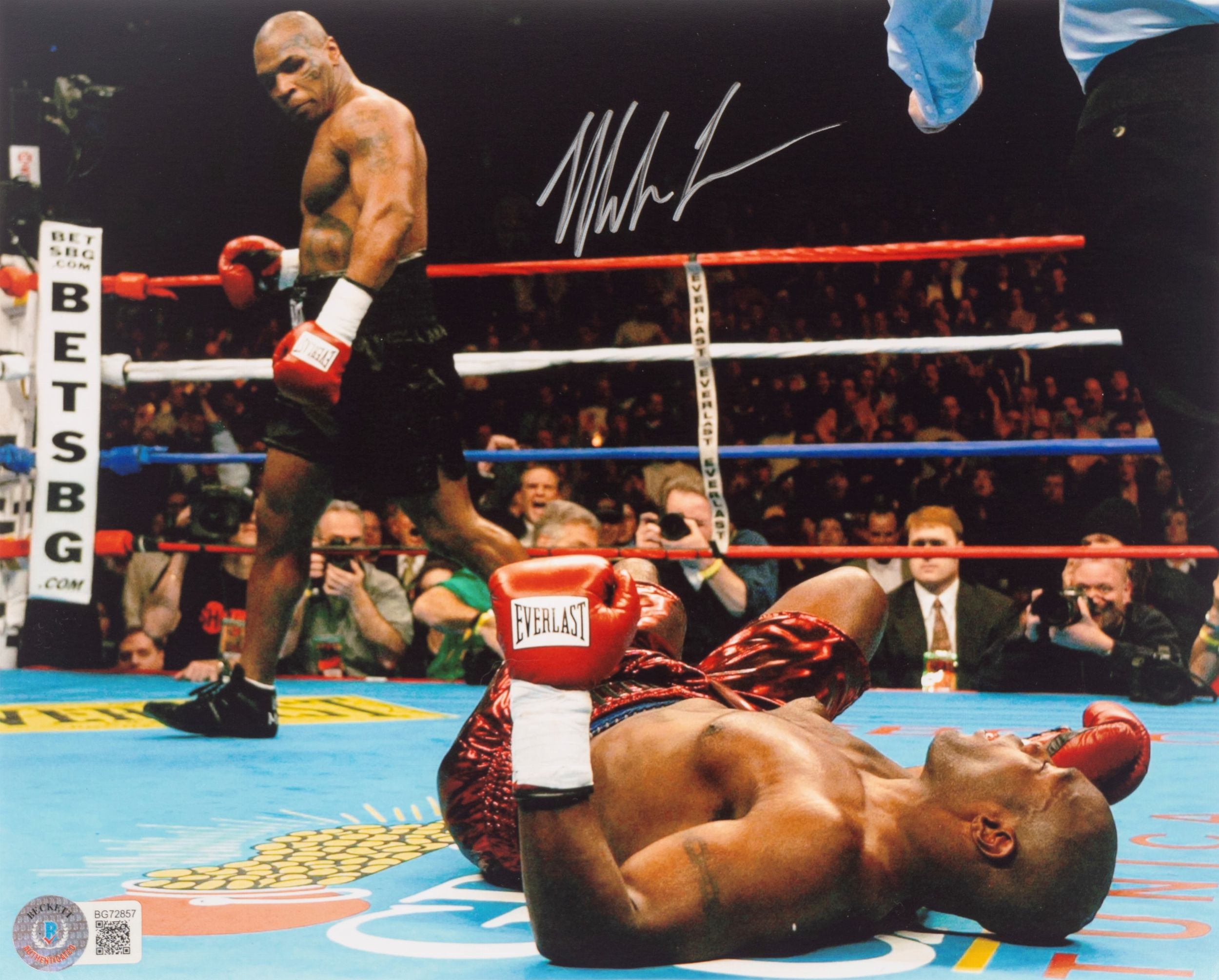 Foto autografata da Mike Tyson con dimensioni 21,5x 20 cm (8”x10” inch) e certificata dalla Beckett. Michael Gerard Tyson, meglio conosciuto come Mike Tyson, è un pugile professionista americano nato il 30 giugno 1966. Considerato uno dei più grandi pesi massimi di tutti i tempi, la sua carriera è stata costellata di successi straordinari e controversie altrettanto clamorose. Soprannominato 'Iron Mike' e 'Kid Dynamite' per la sua potenza devastante, Tyson si è distinto per il suo stile di combattimento aggressivo e la sua abilità di mettere KO gli avversari nei primi round. A soli 20 anni, è diventato il più giovane campione del mondo dei pesi massimi nel 1986, un record che detiene tutt'oggi. Condannato per stupro nel 1992, è stato incarcerato per diversi anni. Ha avuto un impatto significativo sulla cultura popolare, comparendo in film e serie televisive.