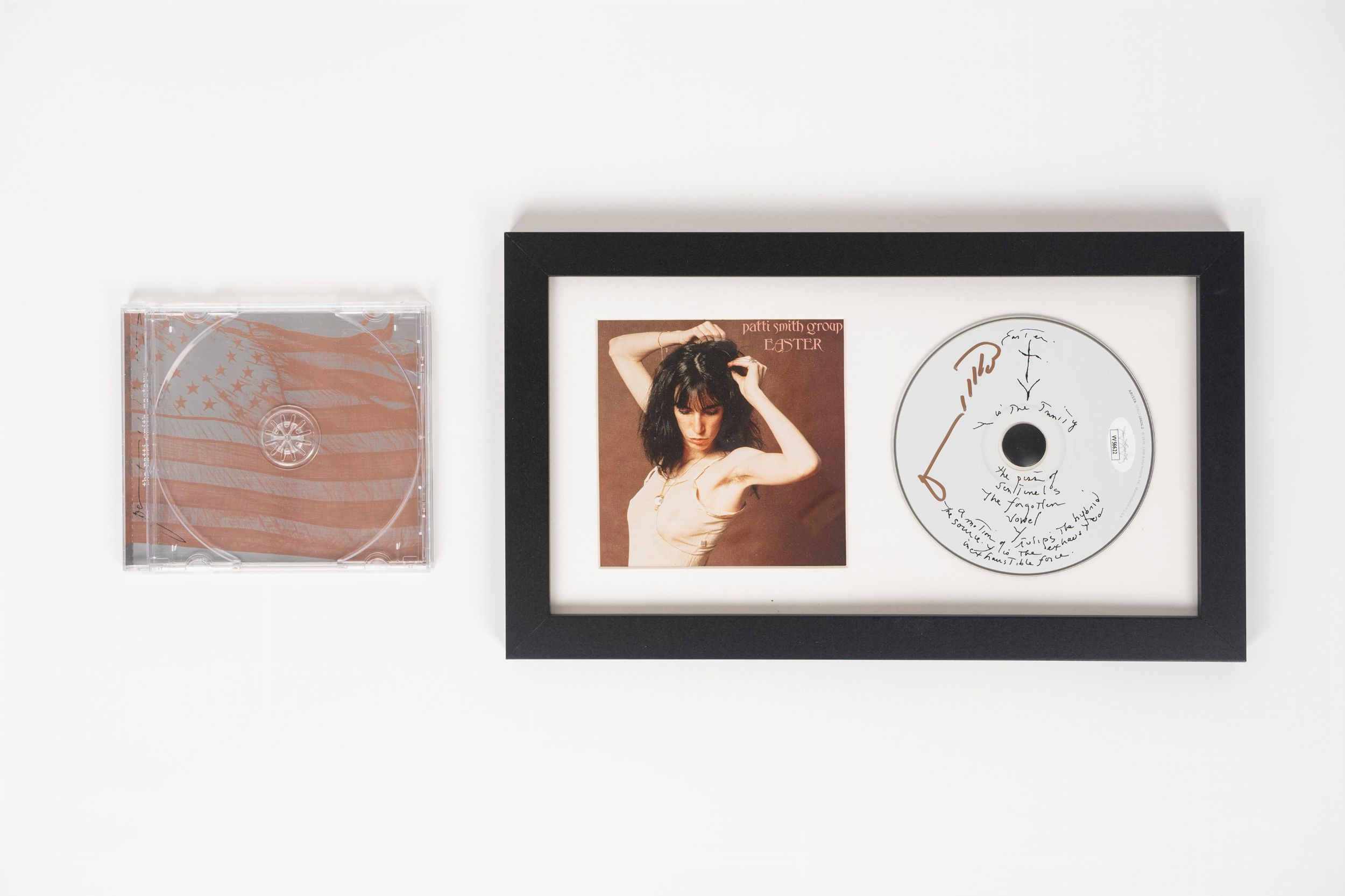 Cd “Easter” autografato da Patti Smith, incorniciato e con autentica della JSA. L'album 'Easter' di Patti Smith è stato pubblicato nel 1978 ed è il terzo album in studio della cantautrice statunitense. È considerato uno dei suoi lavori più significativi ed è stato accolto positivamente sia dalla critica che dal pubblico. L'album include canzoni iconiche come 'Because the Night', scritta in collaborazione con Bruce Springsteen, e 'Easter', che riflette il carattere poetico e politicamente impegnato di Smith. 'Easter' ha contribuito a consolidare la reputazione di Patti Smith come una delle figure più influenti nella storia della musica rock.