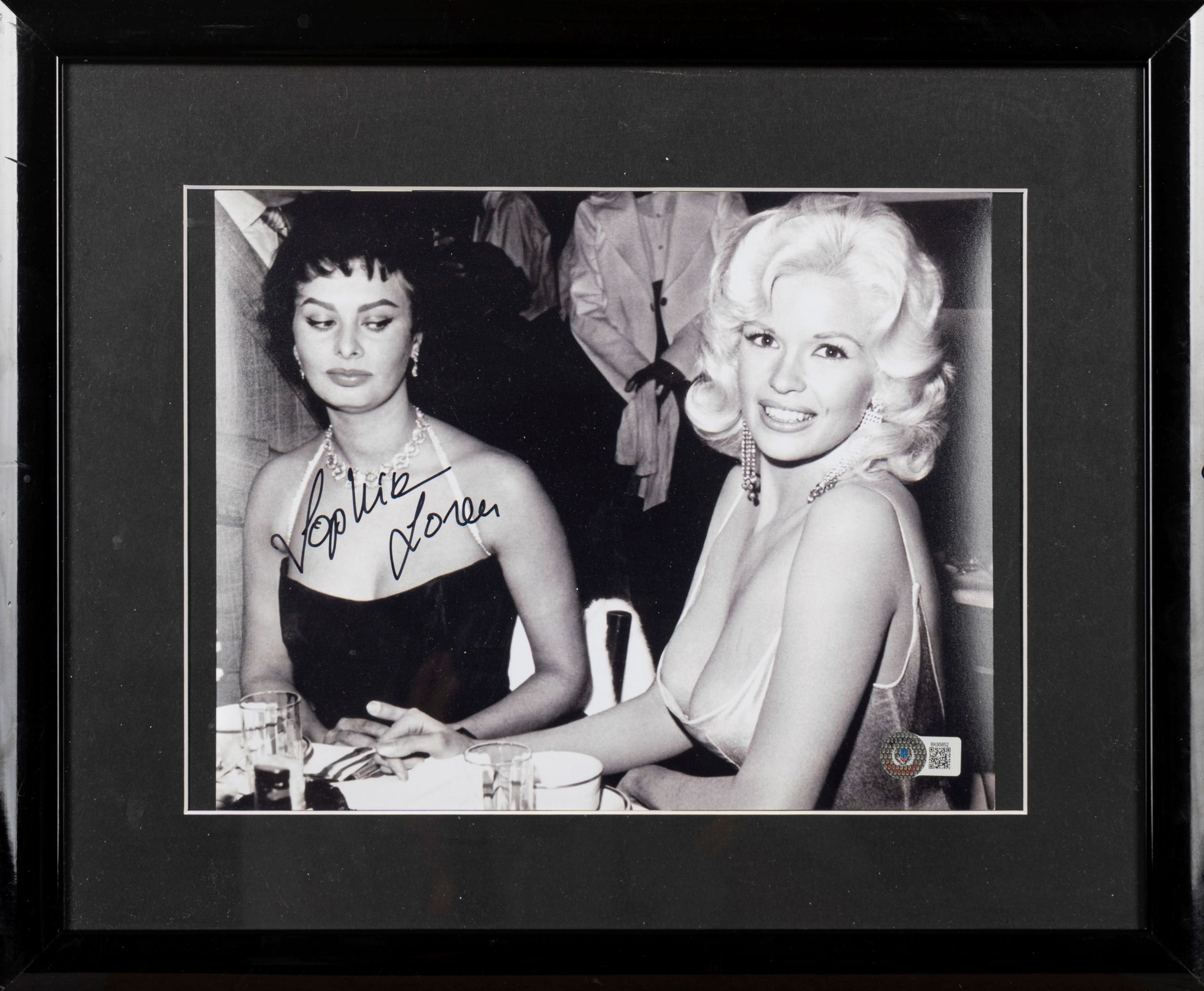 Foto autografata da Sophia Loren con dimensioni 21,5x 20 cm (8”x10” inch) e certificata dalla Beckett. Foto storica, ormai entrata nella cultura popolare grazie anche ai tanti meme che circolano online, con la Loren che sbircia il decolté di Jayne Mansfield. Foto già incorniciata. Sophia Loren è un'iconica attrice italiana che ha raggiunto la fama negli anni '50 e '60. È conosciuta per la sua bellezza, il suo talento e le sue acclamate interpretazioni in film come 'La Ciociara', per cui ha vinto il premio Oscar come Migliore Attrice, diventando la prima attrice a vincere un Oscar per una performance in lingua non inglese. La carriera di Loren ha attraversato decenni, e rimane una figura amata nel mondo del cinema.