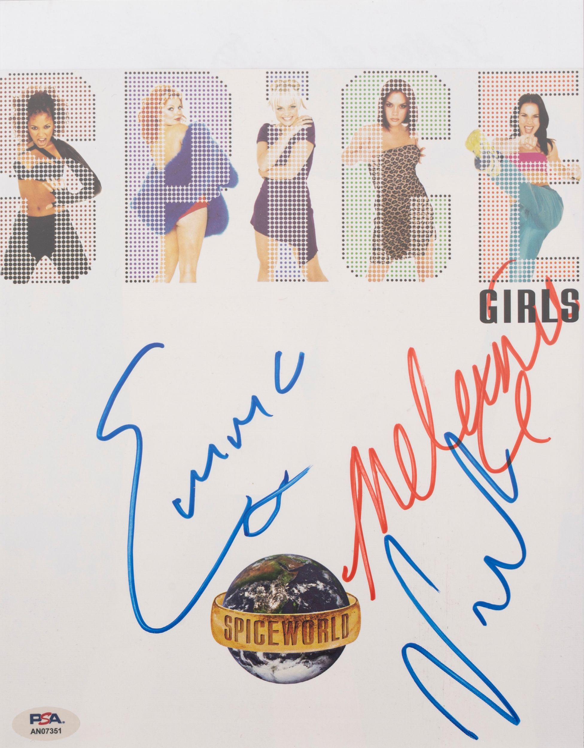 Foto del secondo album del gruppo pop Spice Girls, intitolato Spiceworld, autografata da Melanie Chisholm, Victoria Adams e Emma Bunton. La foto misura 25,5x21,5 cm ed è certificata PSA/DNA. Le Spice Girls sono un'icona della cultura pop degli anni '90, un gruppo musicale britannico composto da Melanie Brown (Scary Spice), Melanie Chisholm (Sporty Spice), Emma Bunton (Baby Spice), Geri Halliwell (Ginger Spice) e Victoria Beckham (Posh Spice). È il gruppo femminile di maggior successo di tutti i tempi, con oltre 100 milioni di dischi venduti. Conosciute per il loro stile unico, le loro canzoni orecchiabili e i loro messaggi di empowerment femminile, le Spice Girls hanno conquistato il mondo con successi come 'Wannabe' e 'Spice Up Your Life'. Il gruppo ha avuto un'enorme influenza sulla moda, sulla cultura giovanile e sull'industria musicale, diventando un simbolo dell'epoca. Anche se le Spice Girls si sono sciolte nel 2000, il loro impatto perdura ancora oggi, e il loro ritorno sul palcoscenico nel 2019 ha dimostrato che il loro fascino è ancora forte.