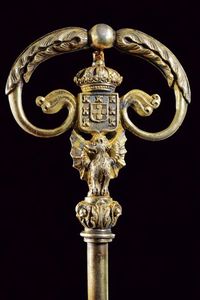 XIX Secolo In bronzo dorato con monogramma 'P.V.' (Pietro V 1837 - 1861) caricato su uno scudo posto sotto corona e soprastante un drago con ali spiegate.