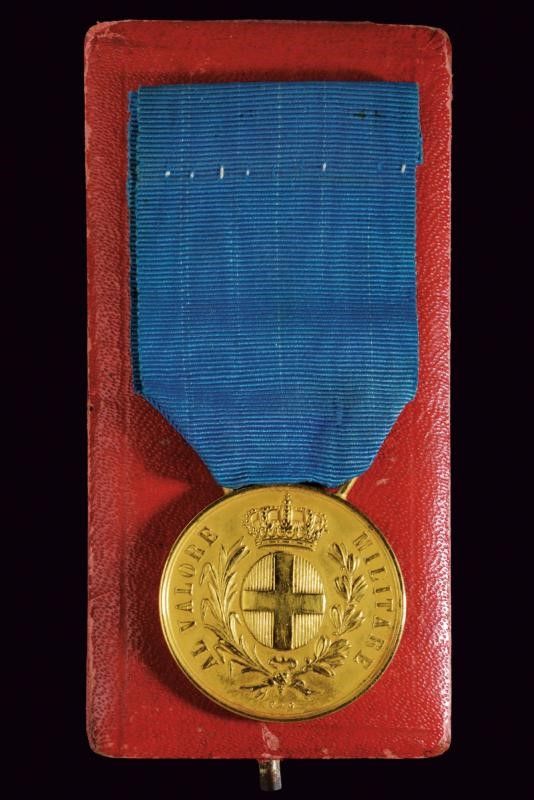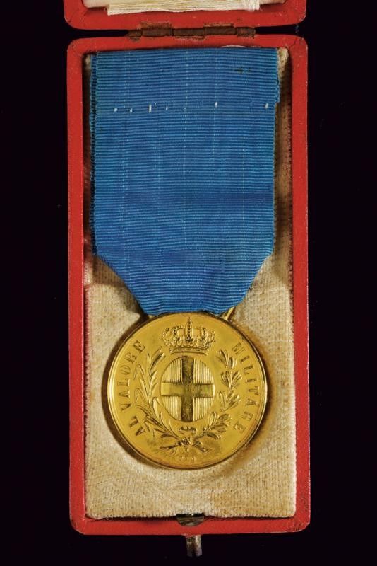 XX Sec. Medaglia 'AL VALORE MILITARE' in oro con iscrizione 'SANTANDER 14 - 26 AGOSTO 1937 - GENERALE DI BRIGATA ANNIBALE BERGONZOLI'. Con nastro ed in astuccio rosso. 26 g.