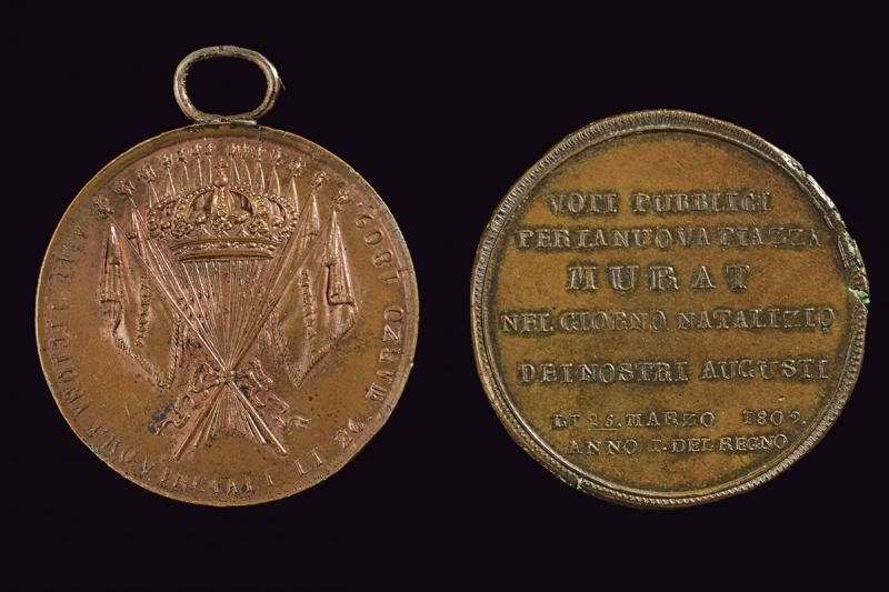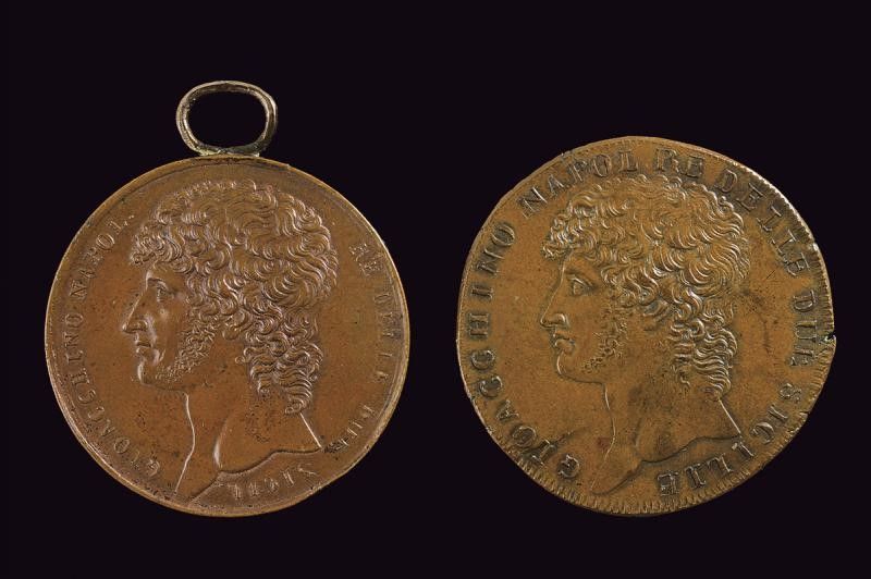 Gioacchino Napoleone Murat (1808-1815) due medaglie in bronzo