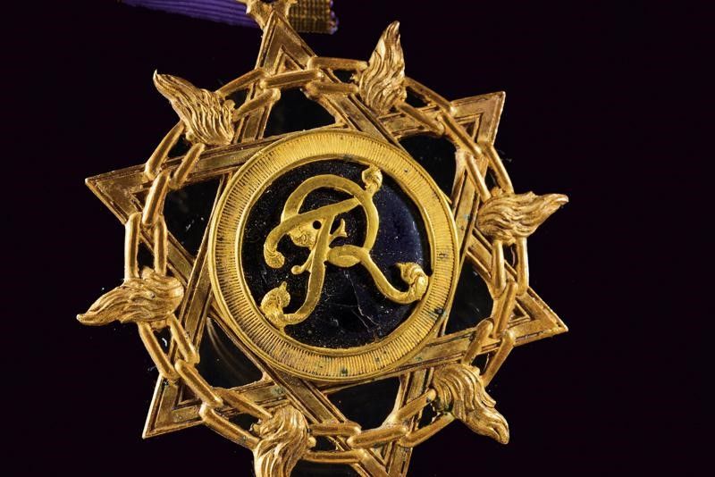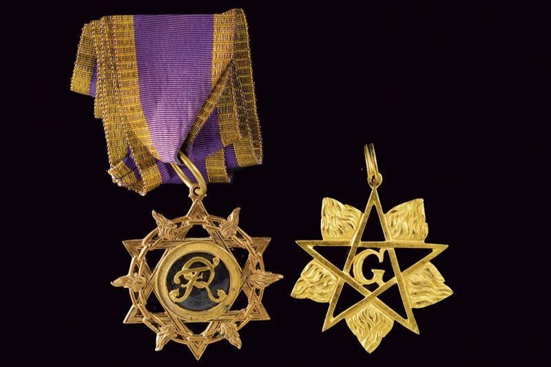 Fine XIX inizio XX Secolo Una in metallo dorato, smaltata al centro, con monogramma 'FR', e nastro da collo. L'altra in metallo dorato, incisa e traforata con lettera 'G' al centro.