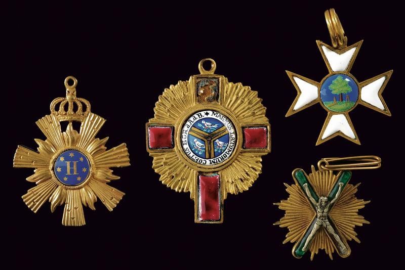 XIX/XX secolo Tutte differenti, in metallo dorato e parzialmente smaltate (due con chip).